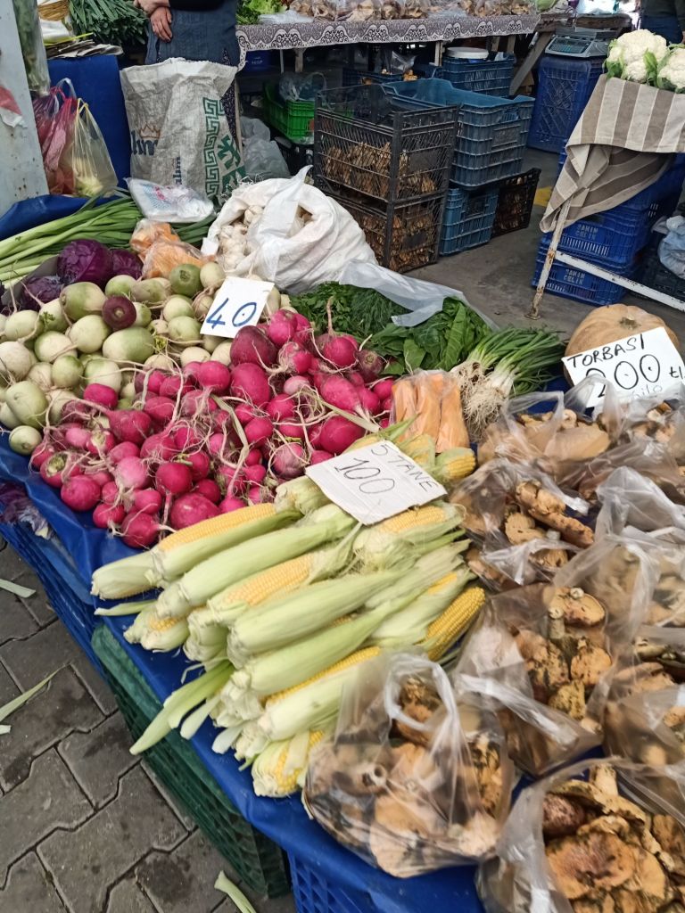 When we arrived it was around midday so Captain Caveman and I headed to the market. Here’s what we bought with prices in lira;