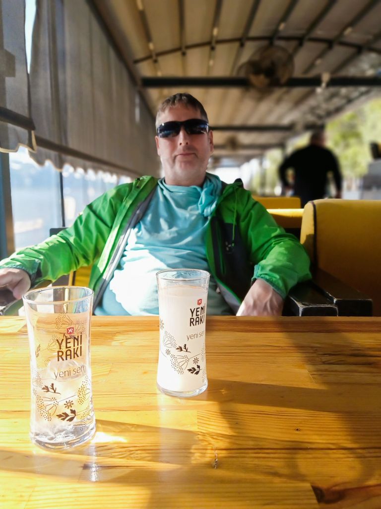Back on the boat we had some fruit and snacks then I had a wine and Captain Caveman had a beer. We all watched a bird eat a snake, which was a little grim, but interesting! It was a really good boat trip and we even tried dried persimmon with pecan nuts with the Turkish lady – they were delicious.