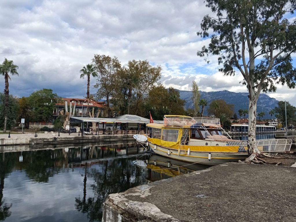 For Captain Caveman’s last day in Dalyan on Monday 1st December, I decided we should go on the Yellow Boat to Köyceğiz. I’d booked the 2 of us on at 400 lira (£7.27) each, leaving at 10.30am and returning by 5pm. I was mainly looking forward to buying some fruit and vegetables at the market as we hadn’t been to the Dalyan one.