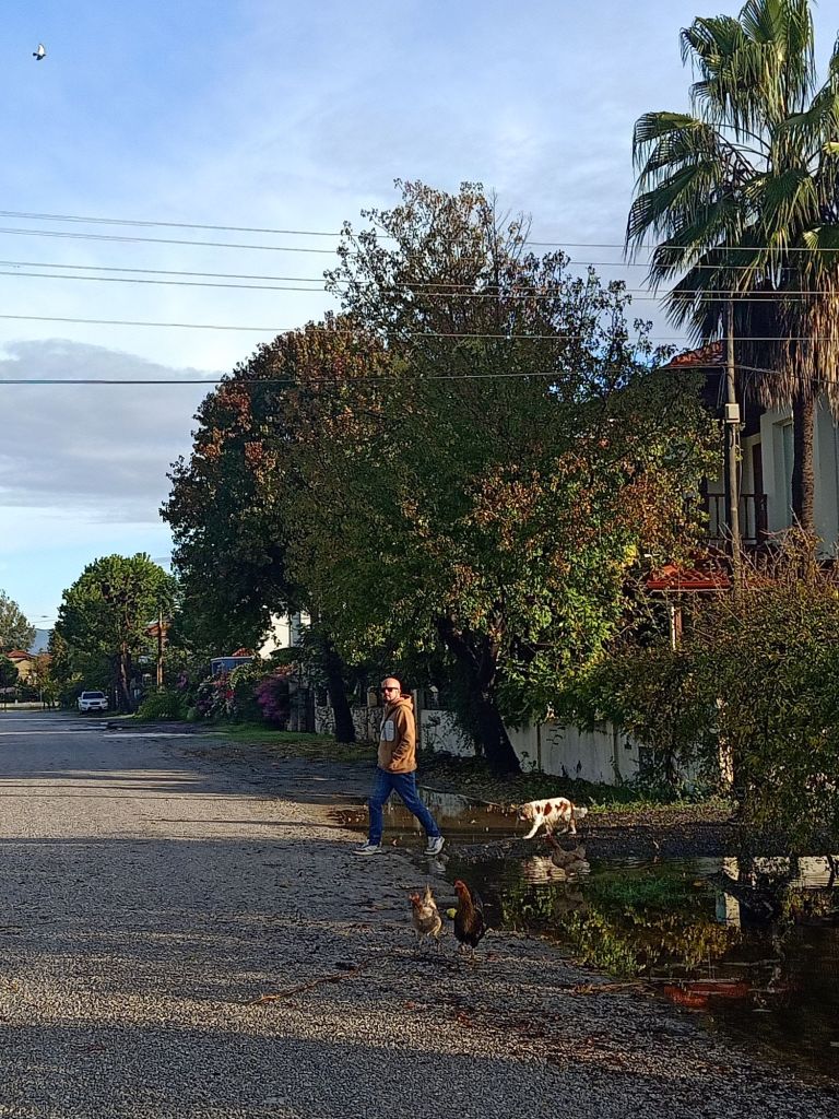 The rain didn’t stop on Saturday 6th December so I got absolutely soaked on my last cat feeding mission. Even the white dogs did not come out or look up from their shelters this morning! I decided to call in to the Fataç shop to see if they had any wellies. I’d only got pumps which, although had a chunky sole, were totally inadequate for walking through the puddles. As luck would have it, the owner was there and let me try on a lovely pair of industrial wellies which he fitted with some super comfy spongy insoles. They did set me back 1700 lira (£30.36) which was not budgeted for but they made me feel like I would never have wet or uncomfortable feet again. Mr Fataç insisted I kept them on and gave me a plastic bag for my soggy sneakers. On my way home, I sploshed about like a child who’d been told not to go in puddles and it was amazing! I knew that my friend was on her way back from her trip, the cat was fed and looked after and I was looking forward to no animal caring for the next 2 days.