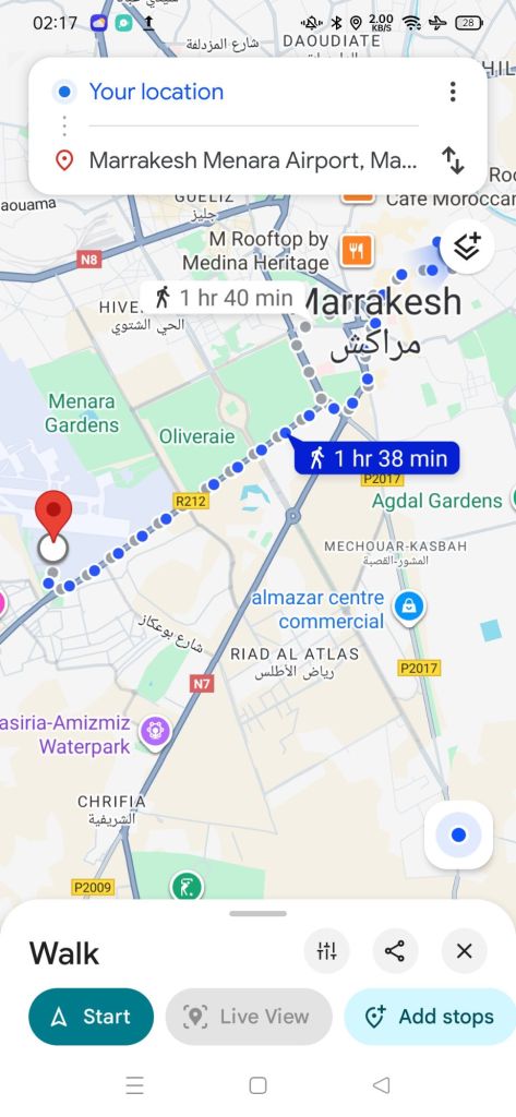 We checked out and walked from The Tribe hotel to the airport (it’s very close) and, as we only had hand luggage we were through security fairly quickly. By 1.15pm we had bought some Duty Free, paying £17.29 for a bottle of Captain Morgan’s Black Spiced rum. We knew Marrakech was likely to be expensive for alcohol so we could have a drink in our hotel room if we liked. Interestingly, Facebook sent me 3 posts to recognise improvements in my conversations and posts on social media – at least someone appreciated me chatting on in my unique way!