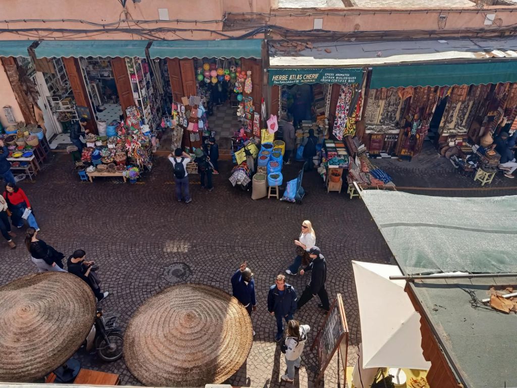 Our next stop was to meet Captain Caveman’s sister-in-law and nephew at a rooftop cafe. Le Grand Balcon Du Café Glacier was the perfect spot to watch the goings on in the square below and meant we could avoid watching any potential animal cruelty. A small amount of snake charming and monkeys for photos is still going on but my theory is to not give it any attention, so that it will eventually die out as an attraction. It was my first time in 14 years of knowing Captain Caveman that I had met Suzanne and Hugo, so it was great to spend some time with them. We sipped soft drinks or mint tea (they don’t have alcoholic drinks) on the roof terrace and caught up. The excursions they had booked already had cancelled due to the adverse weather conditions Morocco was experiencing this week and were staying in Marrakech for one more night before taking the train to Casablanca. Le Grand Balcon Du Café Glacier had an interesting toilet arrangement that I thought worthy of note. There is a toilet attendant who pretends he doesn’t have change so you can end up paying more than you should – like I did, twice! Captain Caveman went in for a free one and said I’d already paid for him just to even the score up a bit.