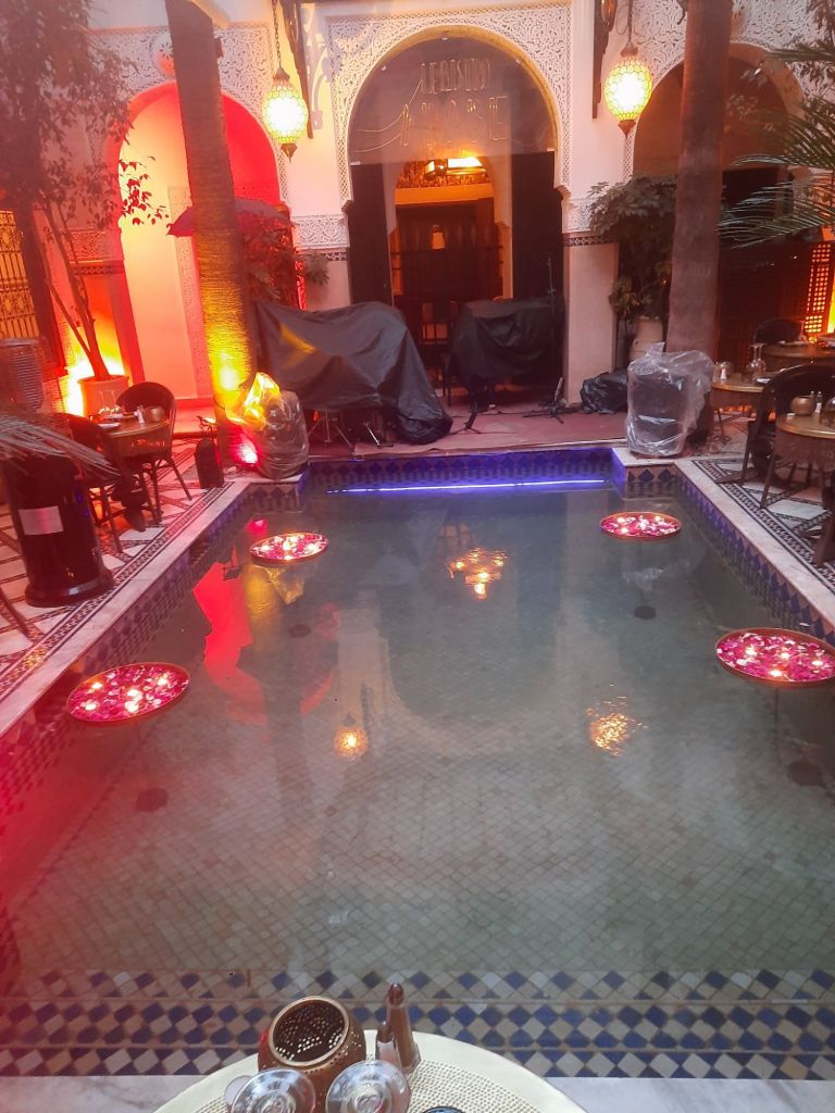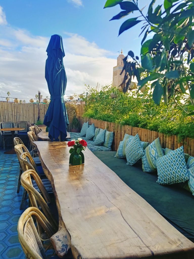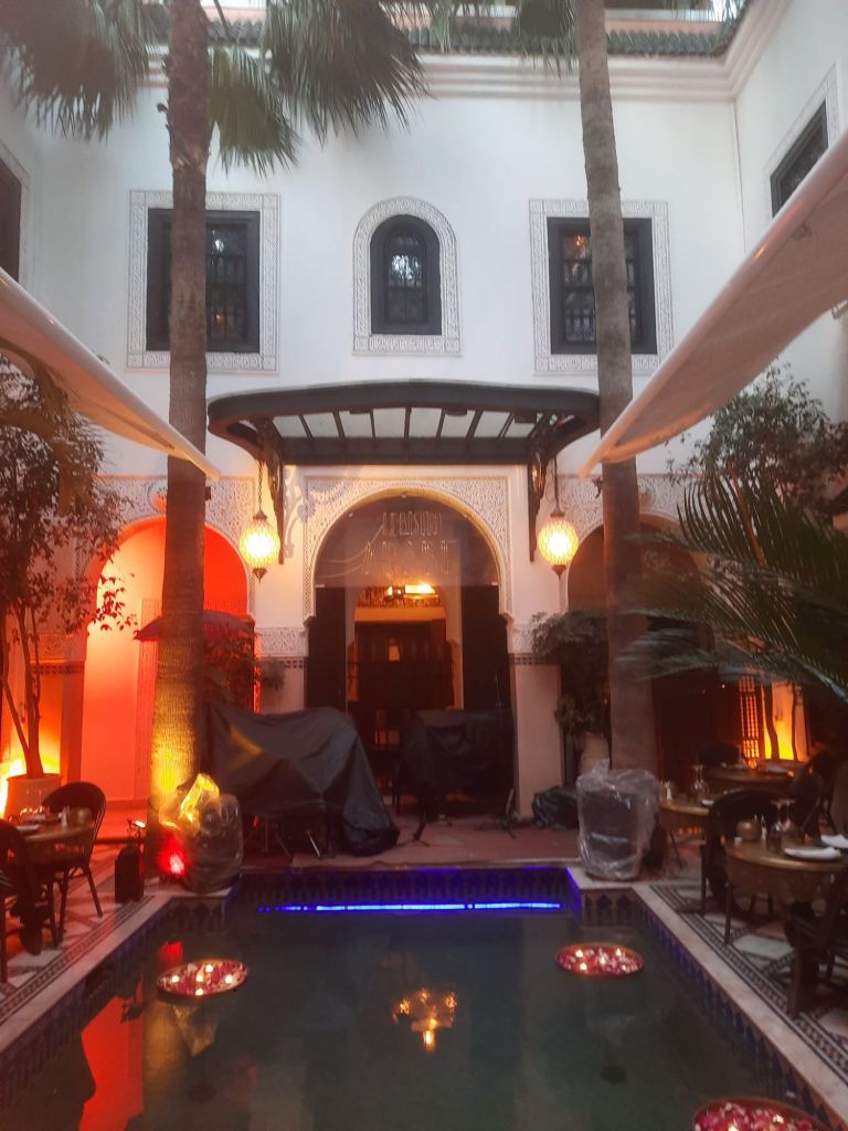 Our next stop was another bar on the roof top of Riad Monceau. It was very nice and we just caught the Happy Hour. We sat at the bar where Captain Caveman had a pint of lager and I went mad and ordered a Pina Colada. The bar man was friendly, made a great cocktail but they certainly knew how to charge in the Jungle Bar – £21 for our 2 drinks at Happy Hour.