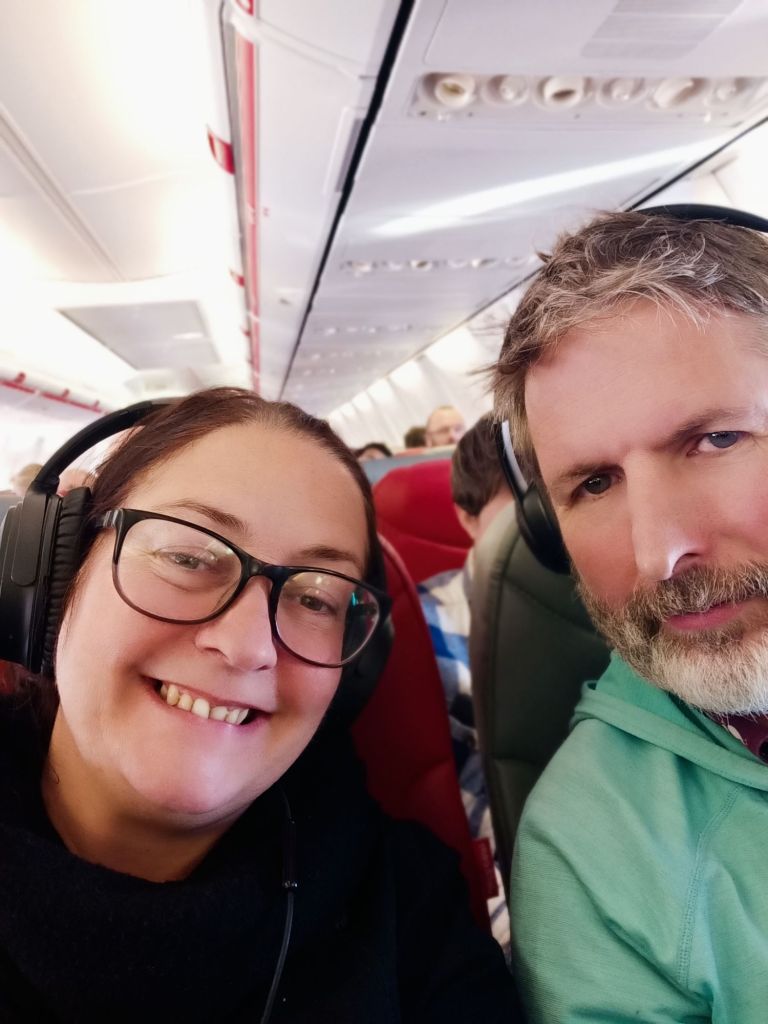 We went to get in the queue to board, our plane was late and I got stopped for a full bag and body search. Captain Caveman made a fuss about being ushered in to queuing when he liked to be the last on the plane. I got peeved when he started arguing with the staff member as I was sure he was trying to get us in to trouble. It turned out, the airport staff wanted us out so they could update the data to say we had left the building. We then stood outside for ages, waiting for everyone to board.