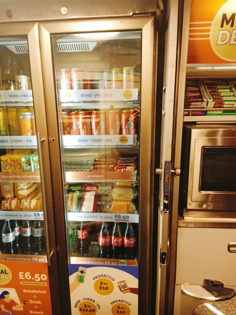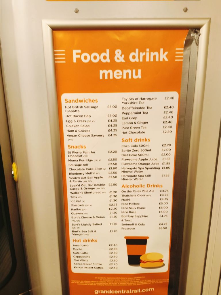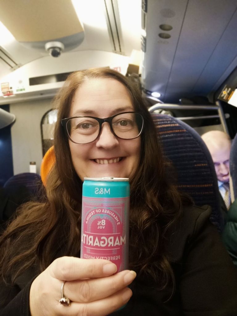 The taxi came and we got to the train station to see a few trains were delayed. Ours came and it was full, with kids sitting in our seats. Captain Caveman turfed them out and we sat down, cracked open a train tin and started to relax. I went to the cafe carriage to get us more light refreshments (gin & tonic for him, wine for me), plus a snack and the journey seemed to go very quickly. The train journey price was £19.80 each from Ponte to London King’s Cross, then £4.20 each to Barnes which I thought was quite reasonable.