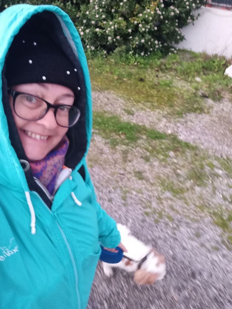 Norman was reluctant to set off for a walk but I made him, it was not raining when we left. When we returned home we were both absolutely soaked and had got caught in the downpour. Norman actually fell out with me and wouldn’t participate in a video to Little Daddy and Step Daddy Drew. He then demanded he should get a treat for enduring such a wet walk!
