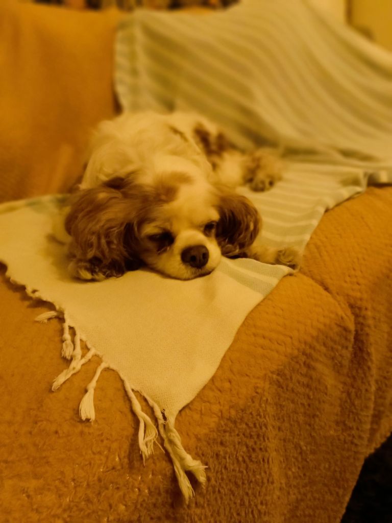 At 11.30am, Norman started begging for a snack and he’d already had breakfast, 2 corners of toast and 1 gravy bone snack. He was not snoozy in the slightest and it was pouring with rain outside so he couldn’t go for a walk.