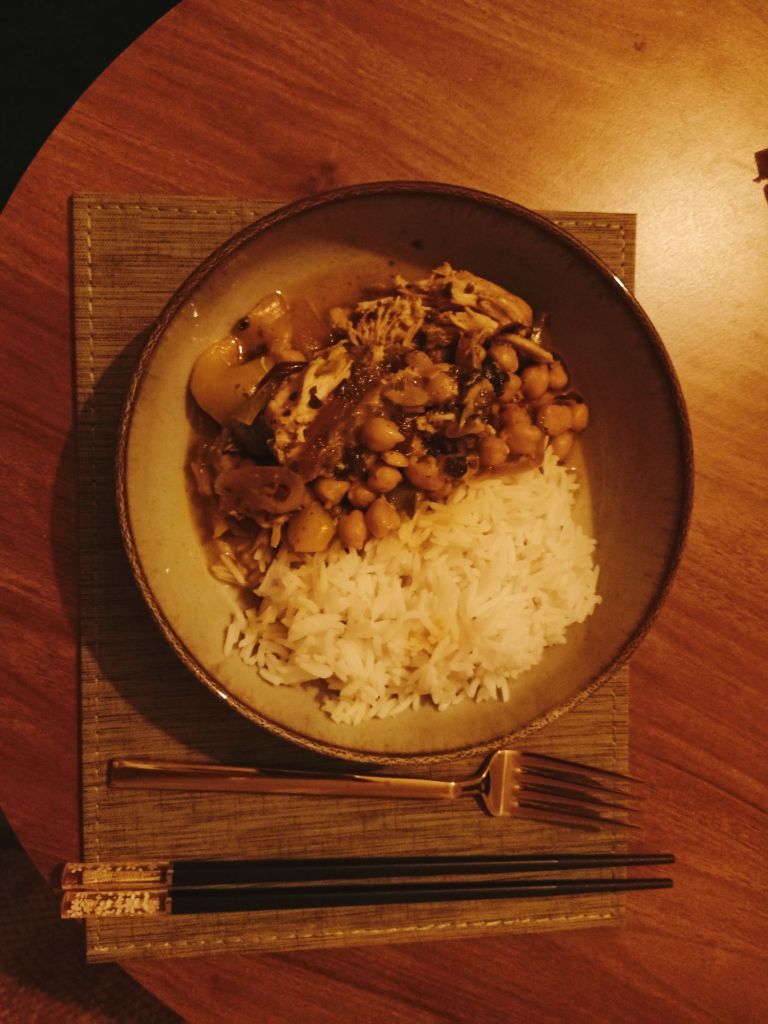 I worked until 9.30pm, including some stuff for my next book, and had a chicken, chickpea and spinach curry for dinner.