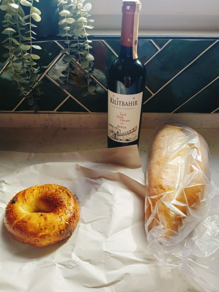 Around lunch time I nipped to the shop and bought a bottle of wine for later at 300 lira (£5.08), and a loaf of bread and an açma for lunch as a treat. I spent just 30 lira (51p) in the bakery and decided not to to go to the market today. I did this for several reasons; I had food in still, it was peeing it down with rain and I wanted to stay on track for spending less than £30 this week. I totted up my spending for the week and I was doing fine. So far this month I had spent 1,532.14 lira (£25.97) and I had £65.03 left to last me until the end of the 21st!