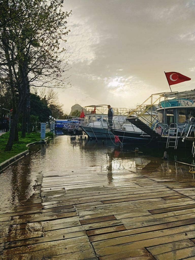 There was a bit of excitement on Sunday 15th February as the flights for Poland and Brussels were going to be booked today. Captain Caveman had already said he would book our two and our good friend, Louisa, was going to be booking hers as we had invited her to join our adventure. Captain Caveman was going to Poland for 5 days of Bridge so this meant Louisa and I could be off exploring without him during some of the trip and then in Belgium we planned to introduce her to the Brussels Beer Festival and our favourite kebab place. I was so excited that I went for a walk outside not realising how bad the floods had been, the Dalyan river was now starting to overflow. The worry among the Dalyan Dwellers, who like to drink in Tapa bar, was if they would still be able to get in the front door! I stopped to take some photos, my phone was still playing up and kept deleting stuff but today I managed to get quite a few that saved. I always say hello to the street dogs who I’ve called Bowie and Dexter, they are friendly and love a little stroke.