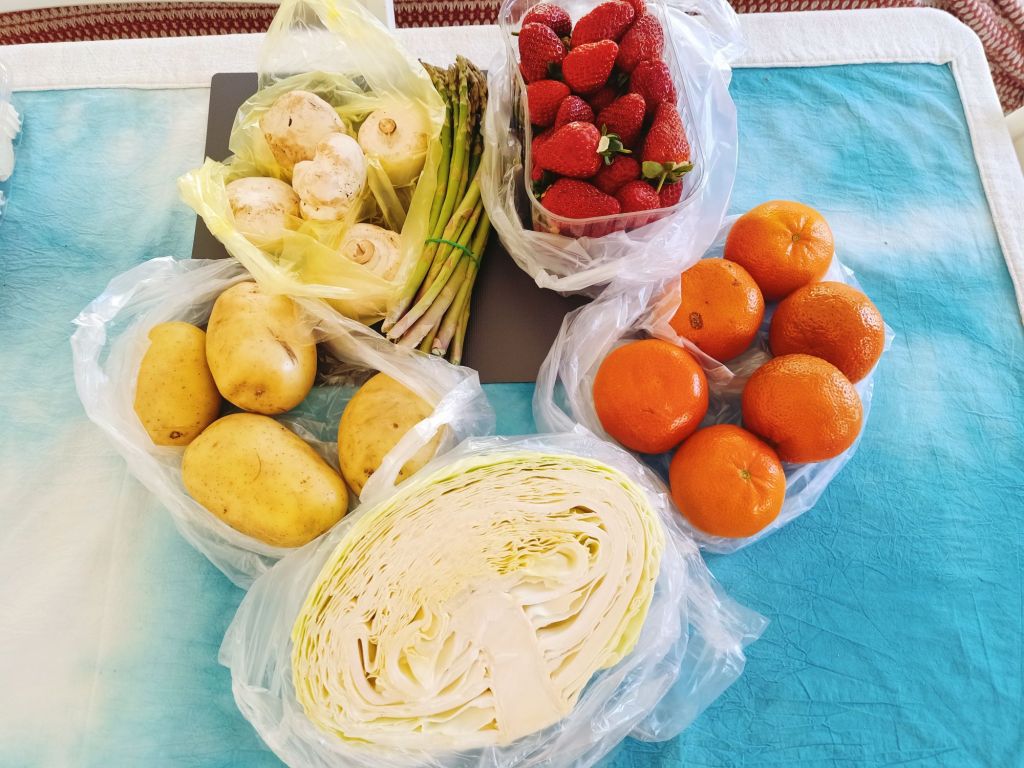 We went halves on a cabbage as they are huge and we even asked the stall holder to cut it in half for us. If I had gone home then, I would have been on budget for the week, but I didn’t.