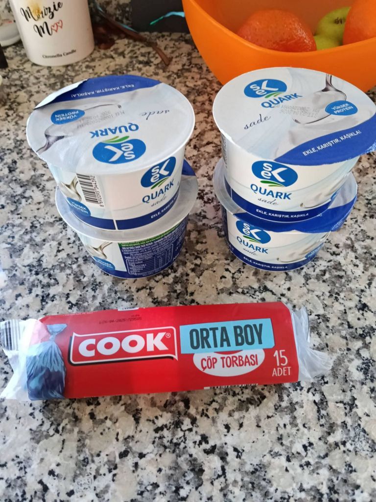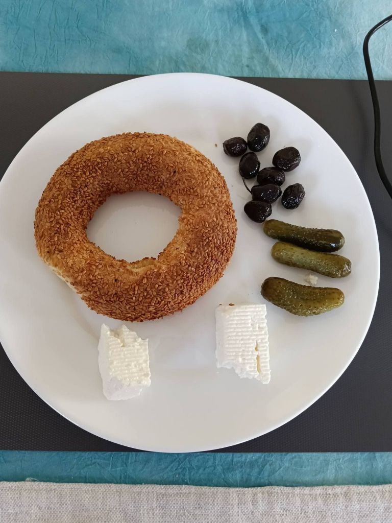 I got as many Quark as I could because they were on offer. Back home I ate the simit with cheese, olives and gherkins for a very late lunch, before getting back to my desk.