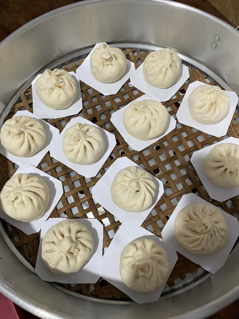 These are usually sold from a motorbike, loaded with a steamer on the back and you need to get them before they sell out. In the cities they are sold on the street and in more permanent establishments. Usually the cheaper they are the less meat they have in them and sometimes they come with minced meat filling and egg – I prefer the cheaper ones and find it hard to manage more than 2 for a meal.