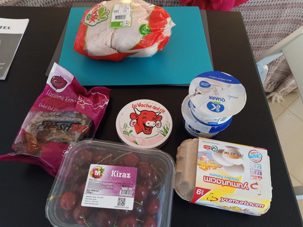 There was a bit of excitement in the air on Tuesday 10th June as it was the day that Captain Caveman was travelling from Manchester to Dalyan after work tonight. While he worked in Warrington all day, I worked from home and tried to get quite a lot of my to do list done so that I could take the weekend off. At lunch time I nipped to the shops and here’s what I bought, prices in lira;