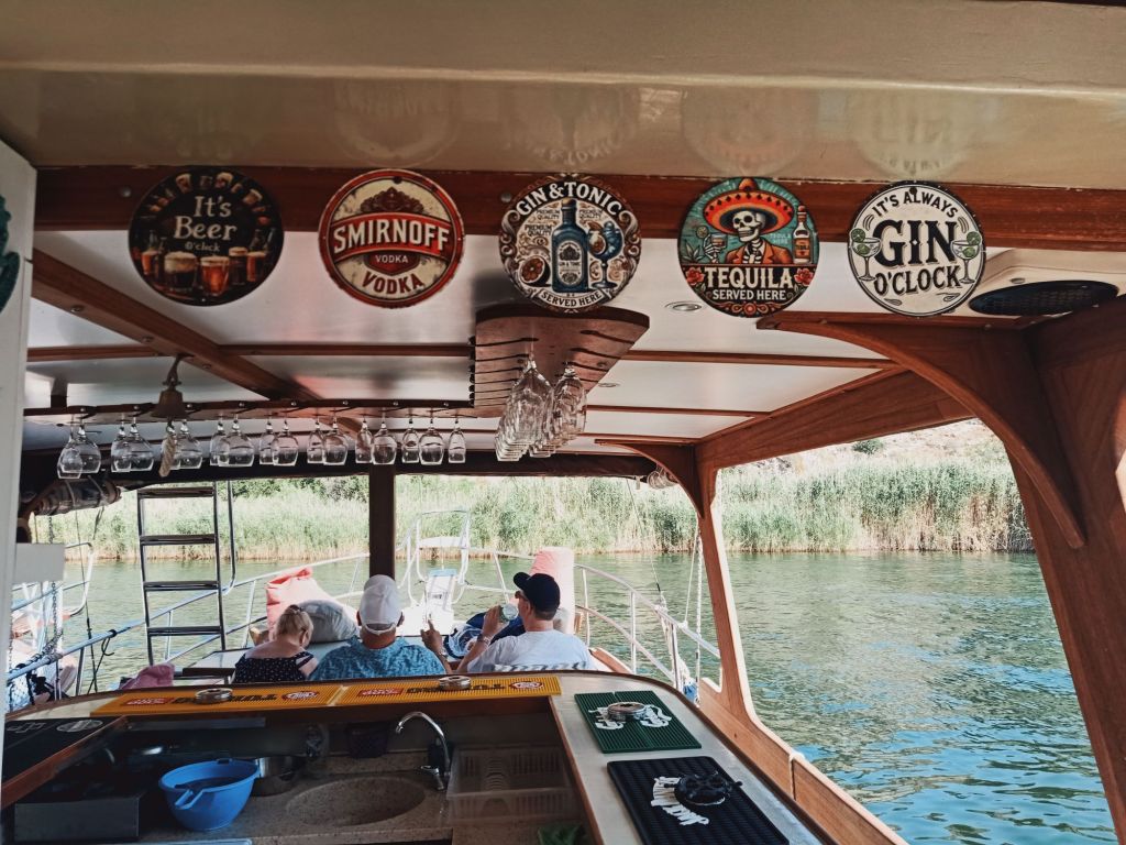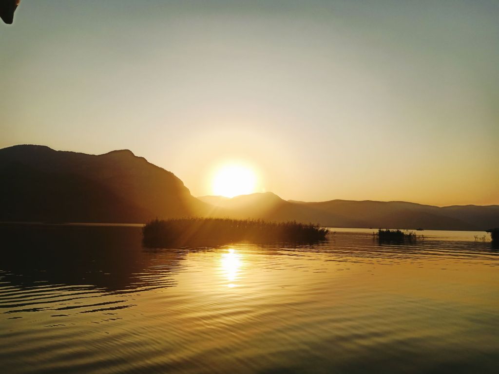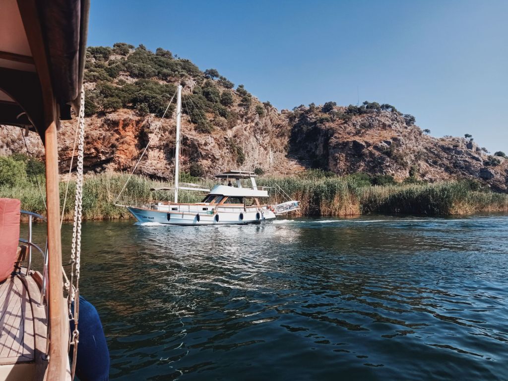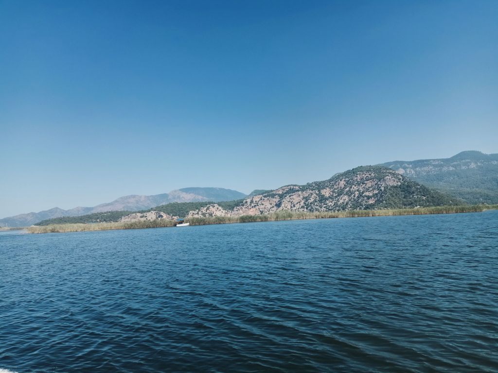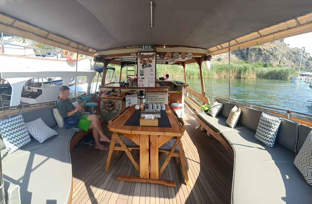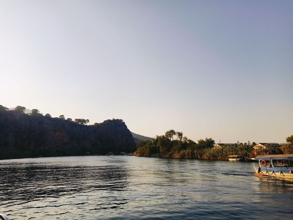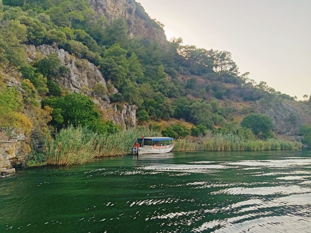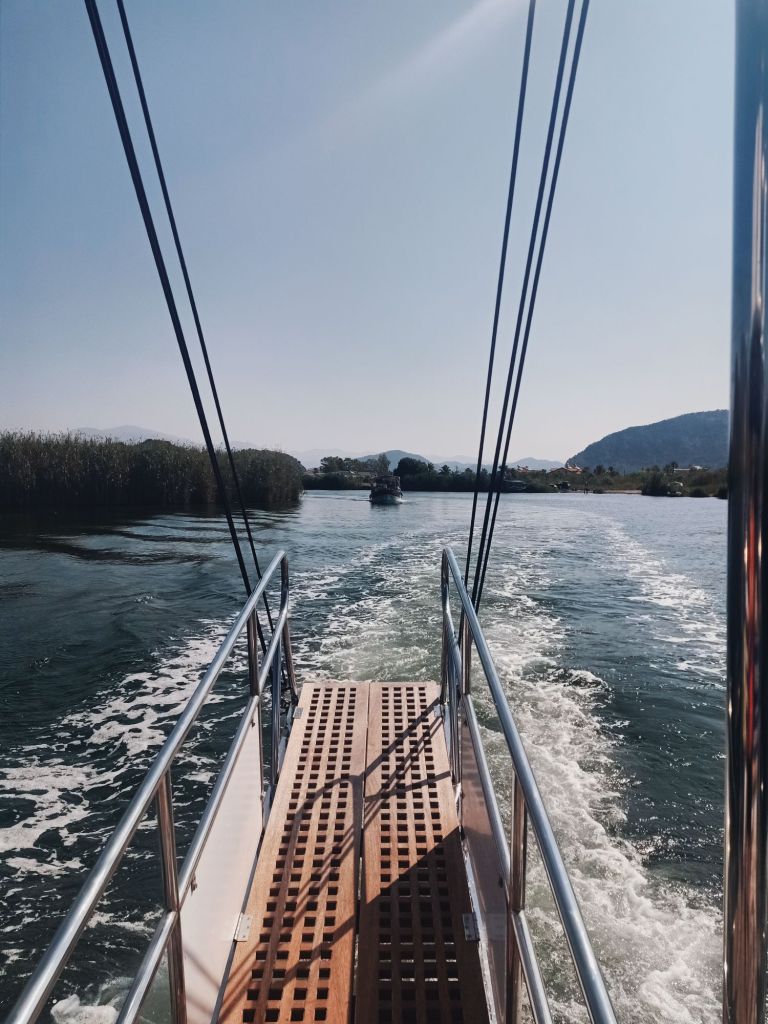 My parents were early but I was ready for our evening meal out. Ma had booked us in to Yalıcapkını (Kingfisher) Restaurant and she had arranged for the boat to pick us up at 6.30pm. We were about 15 minutes early so when we got on the boat, we decided to all have a wine. It wasn’t great and Mom’s glass of white was off and had to be replaced. It also wasn’t cheap at 300 lira (£5.56) for a glass – and we decided we wouldn’t bother with one on the way back. The boat trip was just for the 3 of us and we sailed over to the Kaunos Tombs for sunset. It was really beautiful and it took us less than half an hour to arrive at the restaurant’s jetty. I struggled to get off but was helped and it was still light as we walked through the gardens. One of the big differences I noticed from being in Antalya was that I’d not had to worry for the last 5 days about uneven floor surfaces, unless I had ventured on to the beach. Here in Dalyan, it’s a struggle to find an even floor surface anywhere.