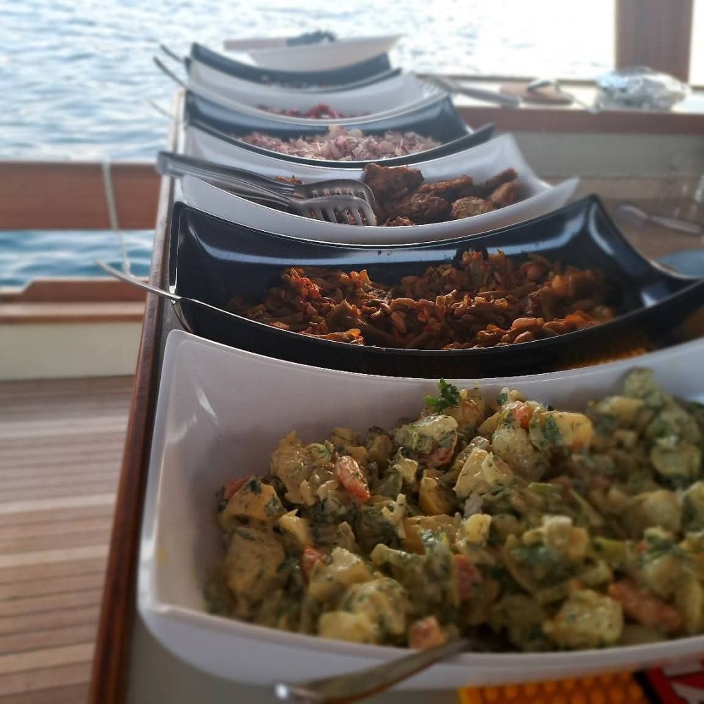 Once inside, our waiter showed us to a nice table and brought the menus. I’d heard mixed reviews from recent visitors so my expectations weren’t too high. A friend had told me that her and her husband wouldn’t go again after a terrible meal, whereas Jamie had enjoyed his steak there recently. For starters, I ordered a burrata salad, Dad chose a beetroot and cheese dish while Mom had the crab. Harris, our waiter, even broke the crab up for Mom which was good. The bottles of wine were fairly pricey but we decided on a bottle of red. It was much more superior to the wine we’d had on the boat and we did wonder if we should suggest they supply the captain with decent wine in future. For mains, we all played it safe and I ordered the steak which Jamie had recommended while my parents both had a pepper steak. In our opinion the food was excellent and we all really enjoyed it.