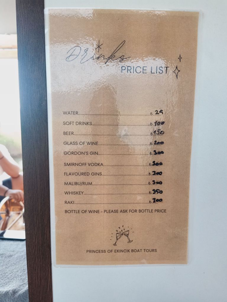 As my parents paid for the meal I thought it rude to make a list of the prices at the dinner table. However, for blog purposes, we did discuss the total for complimentary bread and dips, 3 starters, 3 mains, and a bottle of decent red wine. I thought it still good value at 6,760 lira (£124), so about £41 each – a treat for Dalyan but cheap compared to the UK where we might have ordinarily enjoyed a fancy meal out. I was very impressed and I would definitely eat there again.