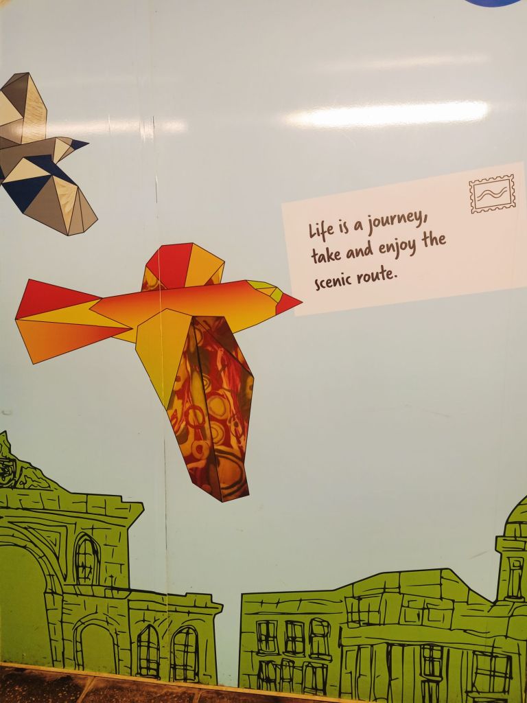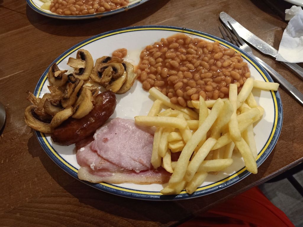 My train was at 10.48am from Blackburn to Bolton and I was a bit early. There is nothing to do at Blackburn station so I could have left later, but I had a wander and found the cinema and a Nandos. One of the things on my list to do in the UK was to go to the cinema but we hadn’t, so it was on my list for next time, along with a visit to Chatsworth, chip shop fish & chips and an afternoon tea. My train was on time but then it got held up so I had to rush to get my next train in Bolton. The 11.18am train from Bolton to Manchester airport was also delayed so I treated myself to a takeaway cup of tea for £2.45. I arrived at Manchester airport in good time and had a wander through the Duty Free without spending any money. The cost of Dairy Milk chocolates was rather pricey! My flight was at 14.40 and no gate was displayed so I thought I had time to get a meal and a drink at the pub that wasn’t a Wetherspoon’s. It turned out that I didn’t really have time but had already bought it and then had to get it to takeaway as the flight gate got announced and then was boarding straight away. Here’s what I got with prices in pounds;