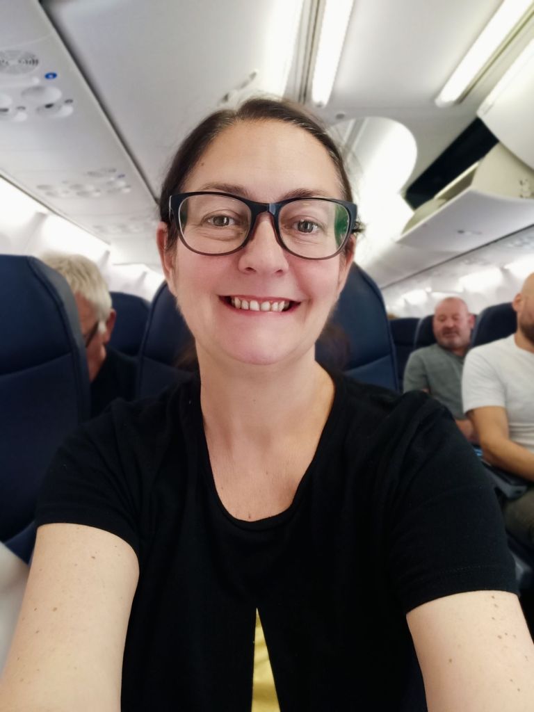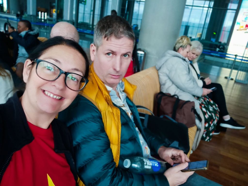 2. First row flight buddies, Sam and Michelle, to make the journey more interesting and fun