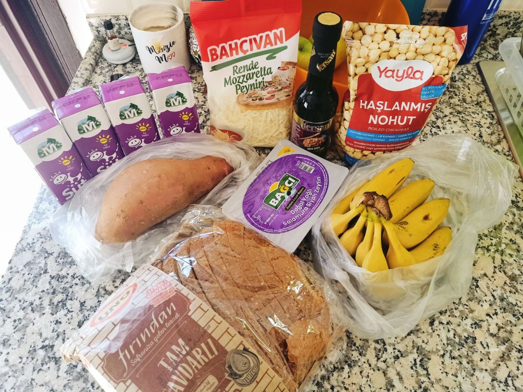 After tea, toast and a couple of hours of work on Monday 2nd March, I decided to pop to the shops to stock back up. Here’s what I bought with prices in lira:
