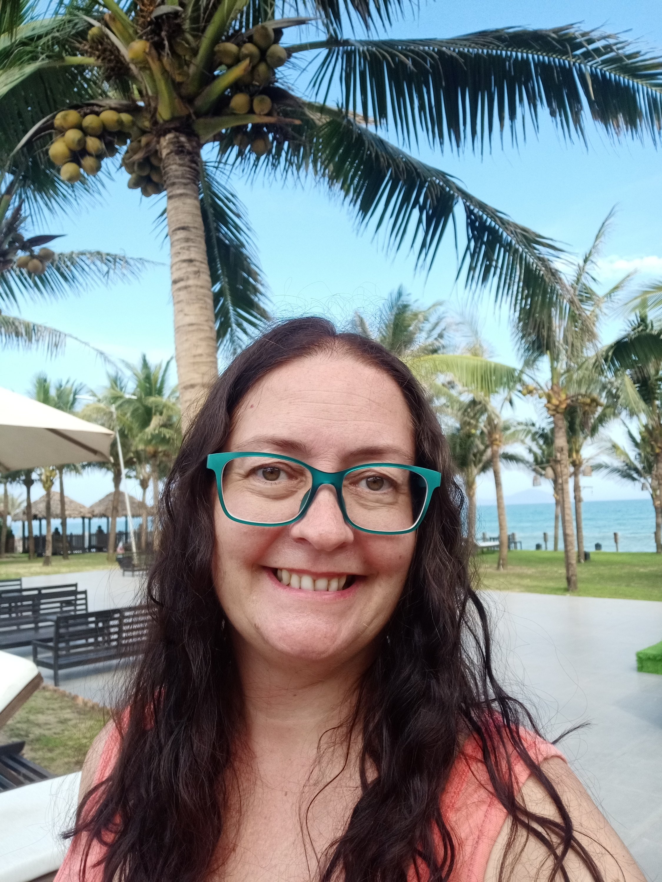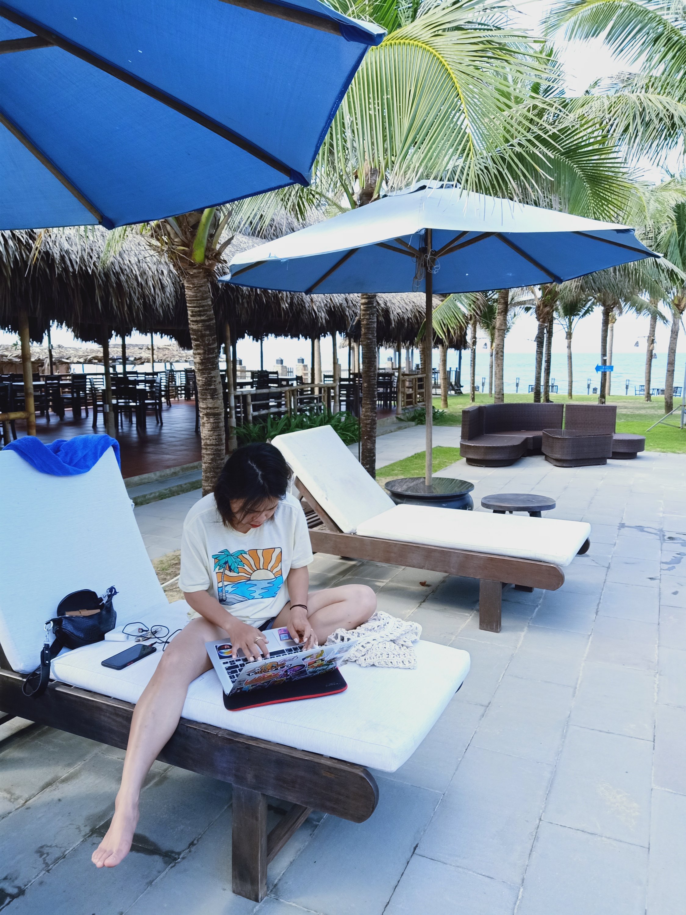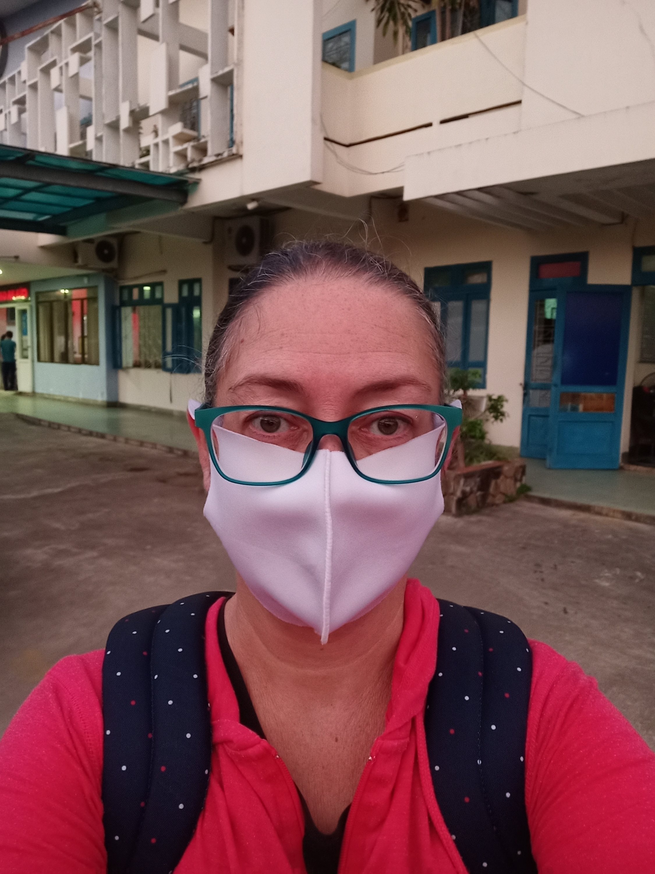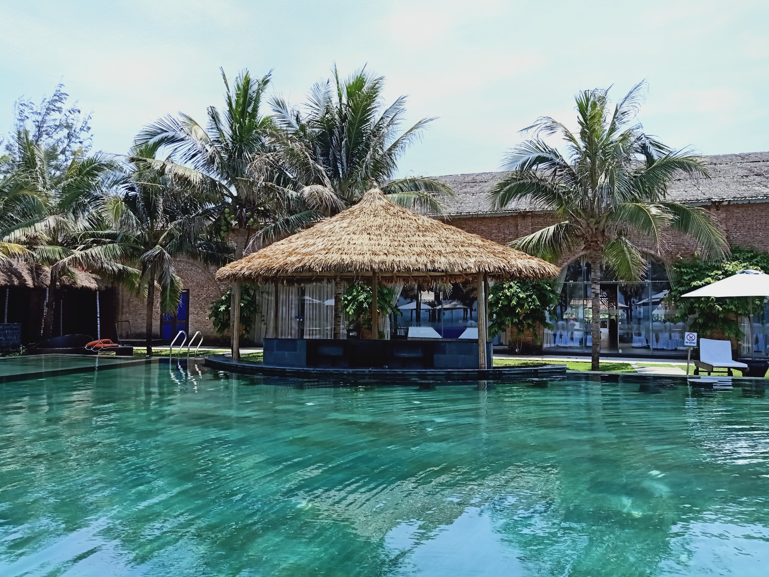 I’d arranged for us to meet Caroline (who used to live in Phong Nha) at 9 Grains Bakery & Cafe in Hoi An, at 9.30am. She is now one of the 2 owners of it and they do great croissants so we decided we would meet her there for a civilised catch up. With our croissants I had a lovely pot of earl grey tea and Captain Caveman had a couple of espressos made with the freshly delivered Faifo Roastery coffee. The cafe soon filled up with expat families and Vietnamese groups and the AC was nice and cool. By about 11am Caroline had suggested we go to the beach but she needed to change, so we would go to her place, just around the corner. As we left, she gave me a bar of handmade coconut soap, which they make and sell in the cafe. My eczema had been playing up on my neck again so this would be good to use. Captain Caveman walked it, while I had a lift on Caroline’s Royal Enfield Himalayan motorbike.