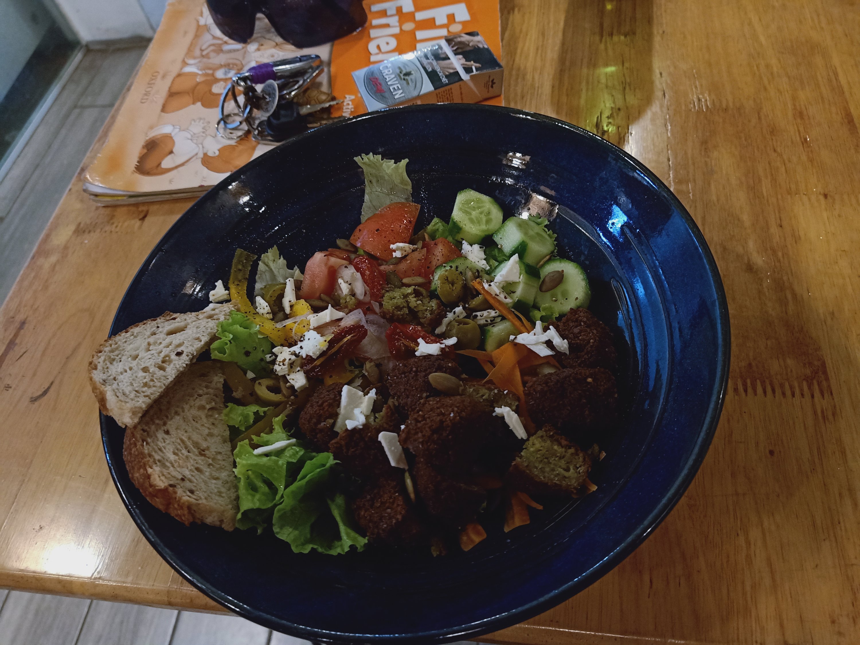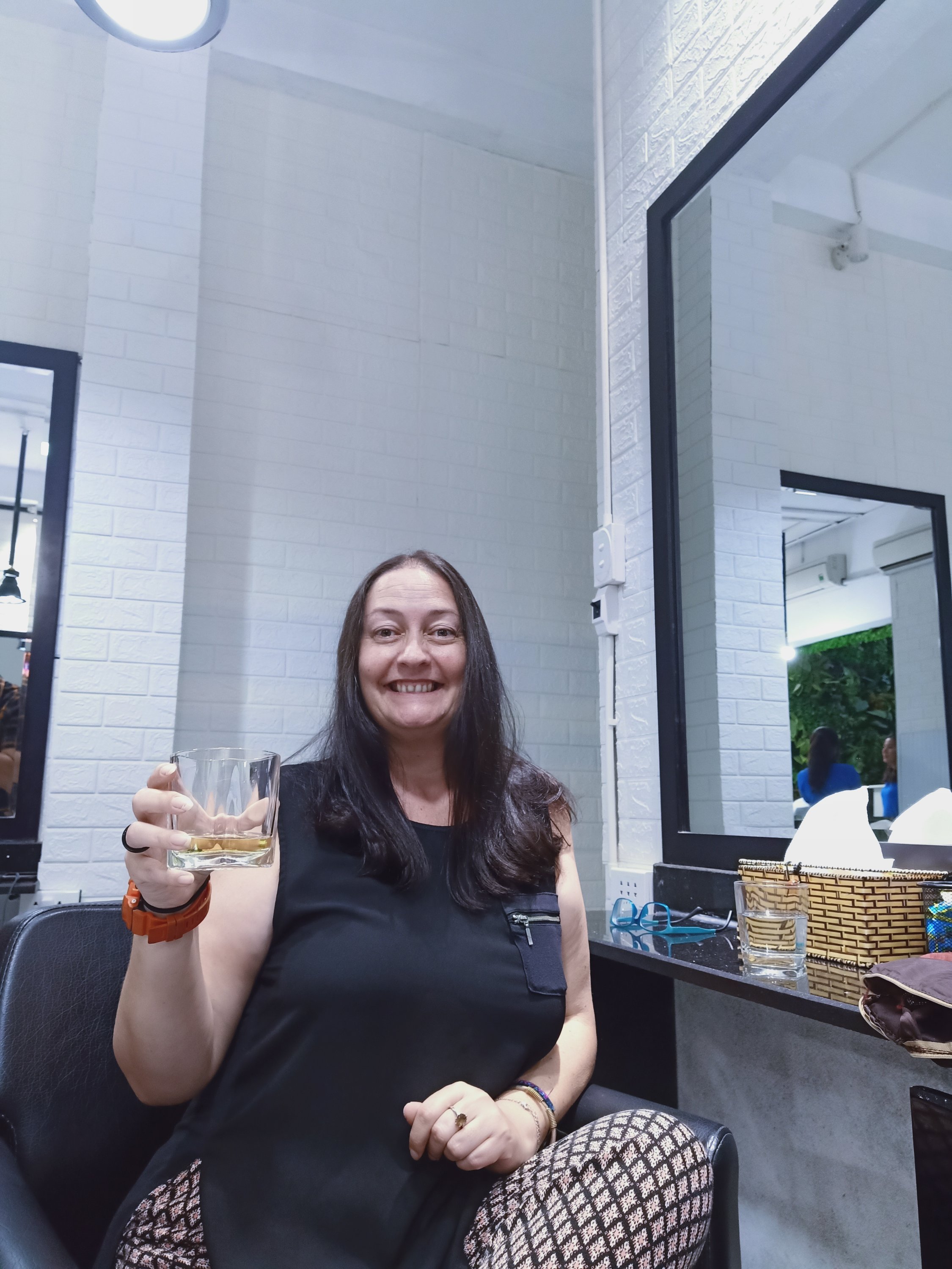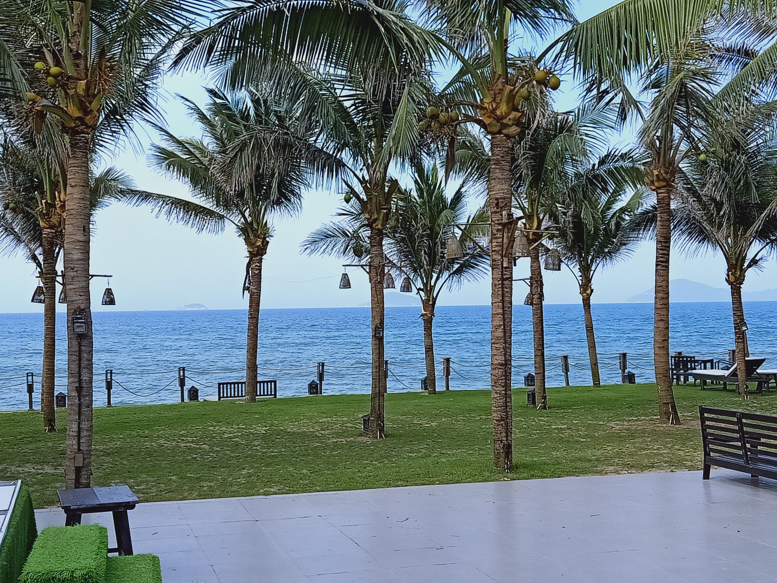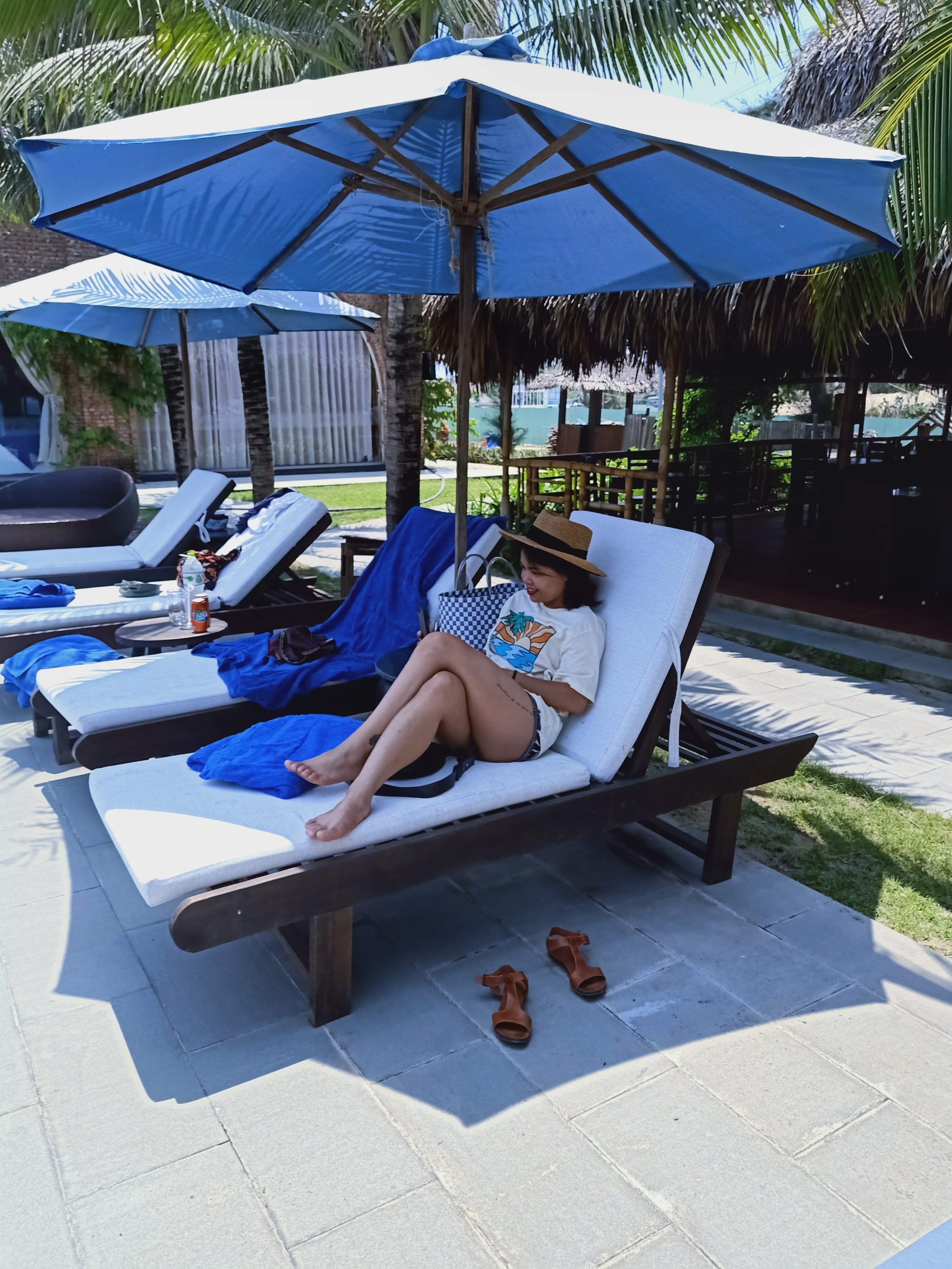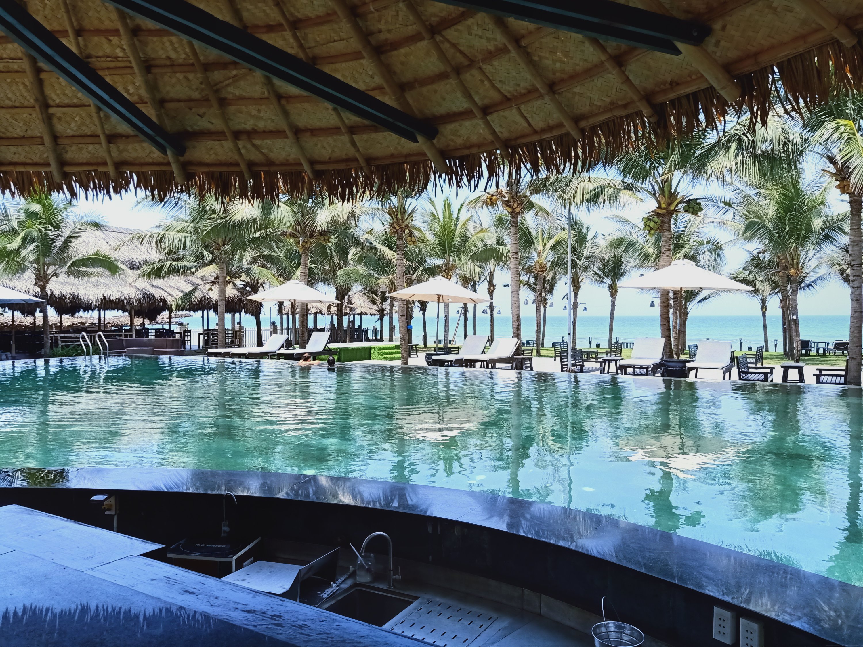 I’d arranged for us to meet Caroline (who used to live in Phong Nha) at 9 Grains Bakery & Cafe in Hoi An, at 9.30am. She is now one of the 2 owners of it and they do great croissants so we decided we would meet her there for a civilised catch up. With our croissants I had a lovely pot of earl grey tea and Captain Caveman had a couple of espressos made with the freshly delivered Faifo Roastery coffee. The cafe soon filled up with expat families and Vietnamese groups and the AC was nice and cool. By about 11am Caroline had suggested we go to the beach but she needed to change, so we would go to her place, just around the corner. As we left, she gave me a bar of handmade coconut soap, which they make and sell in the cafe. My eczema had been playing up on my neck again so this would be good to use. Captain Caveman walked it, while I had a lift on Caroline’s Royal Enfield Himalayan motorbike.