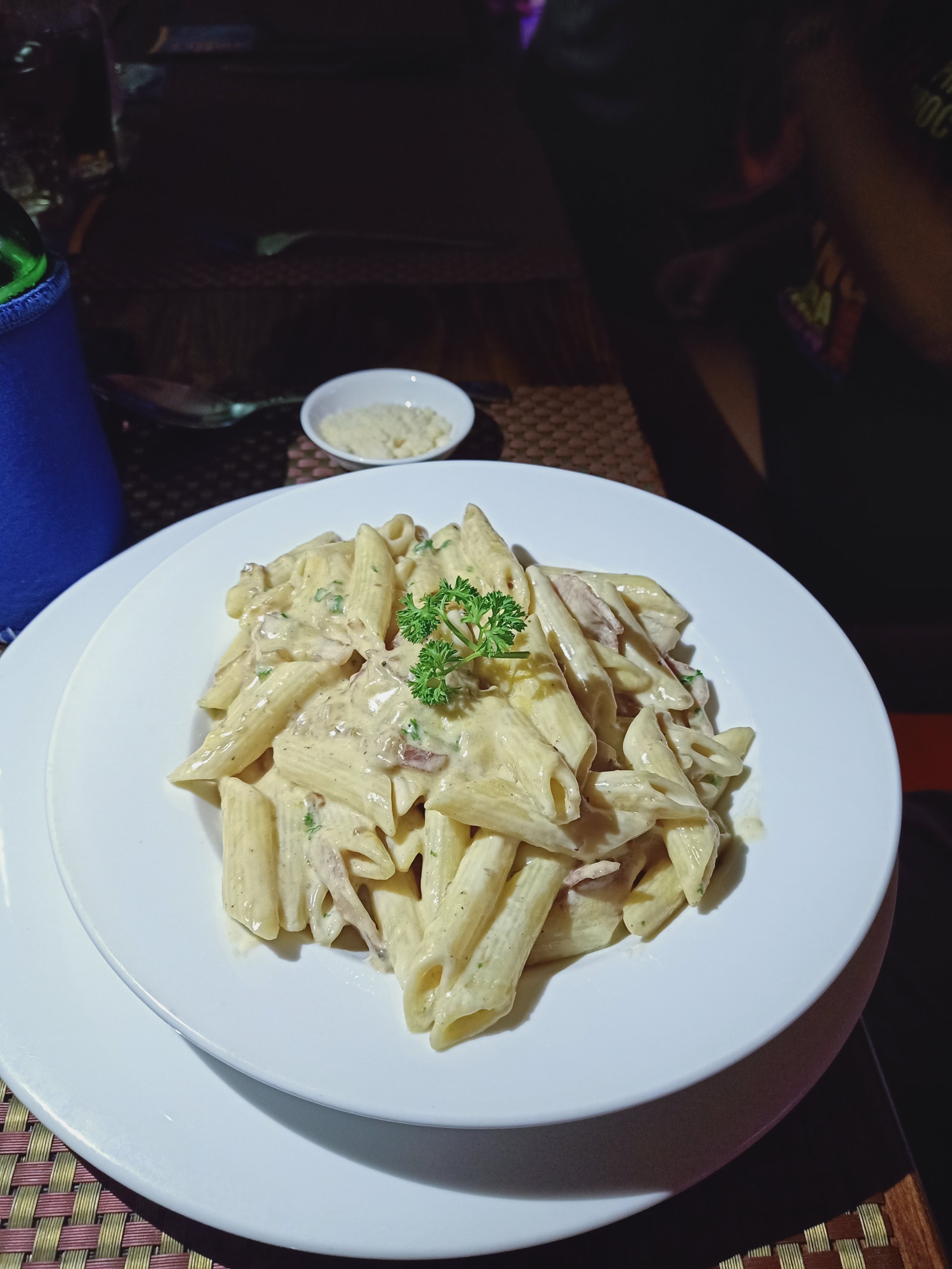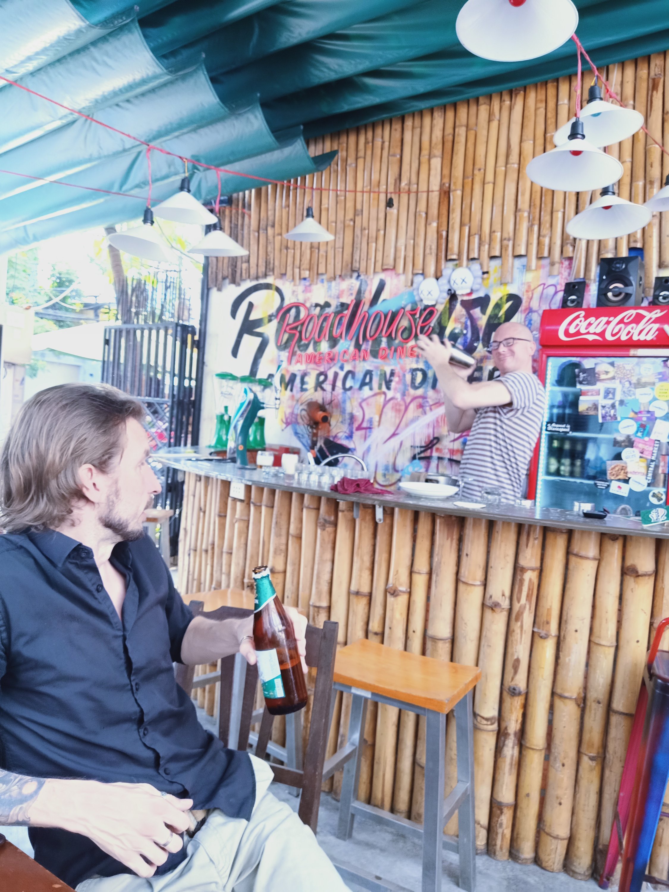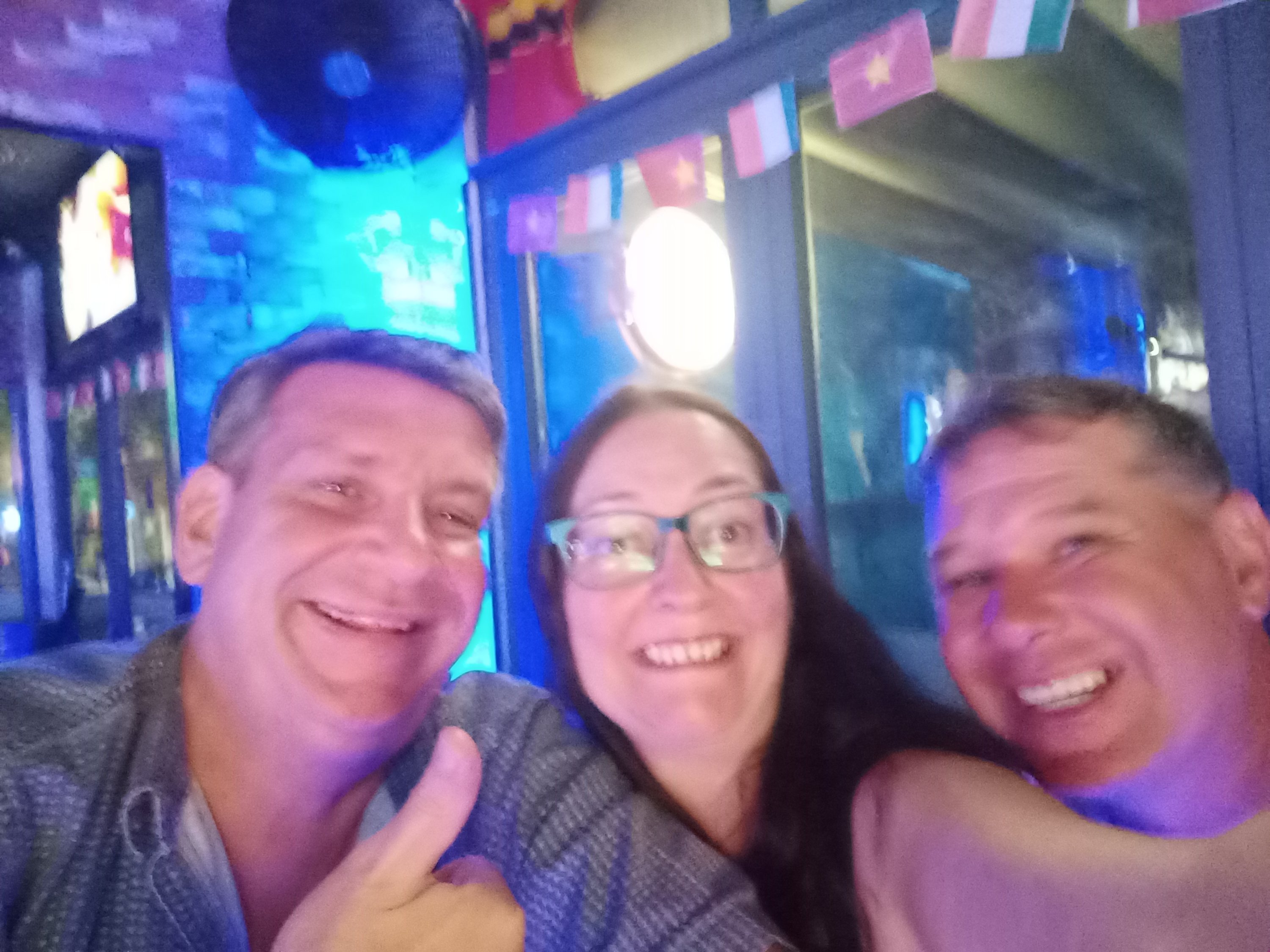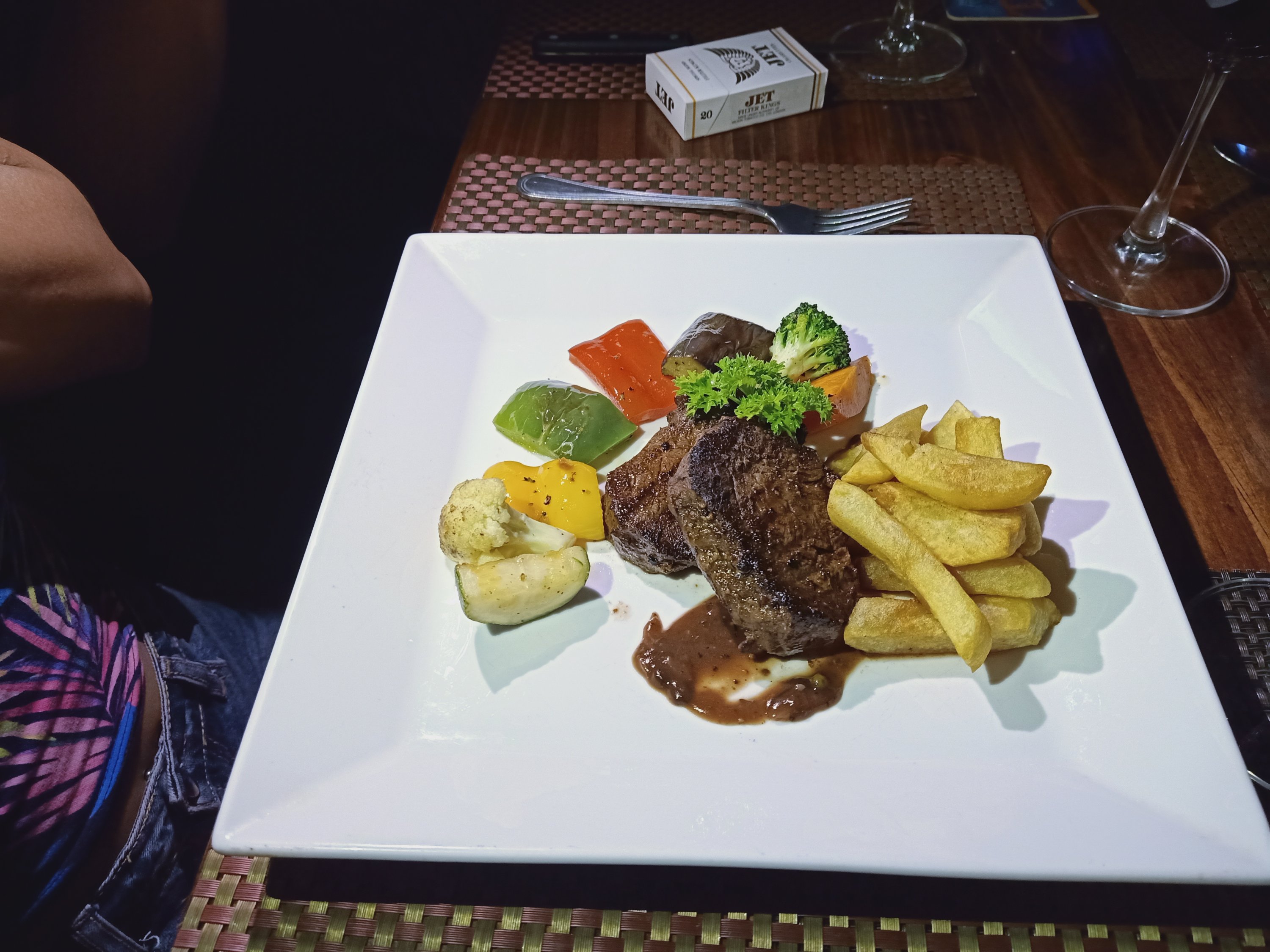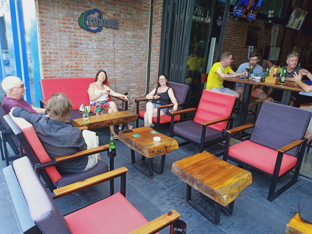 By 8.45pm we were tucking in to starters of chicken livers wrapped in bacon and halloumi cheese, drinking a rather nice bottle of red wine and chatting to the restaurant owner. We were at Olivia’s Steak House in Danang, where Scott is the friendly owner of this place, as well as Dirty Fingers. For mains Captain Caveman and I both ordered an Australian steak which we had with macaroni cheese, asparagus, onions, cheesy jacket potato and pepper sauce. It was delicious and we both really enjoyed the food. The waitress was new and really lovely, she dealt with Captain Caveman well when he complained he didn’t get the drinking water quickly enough.