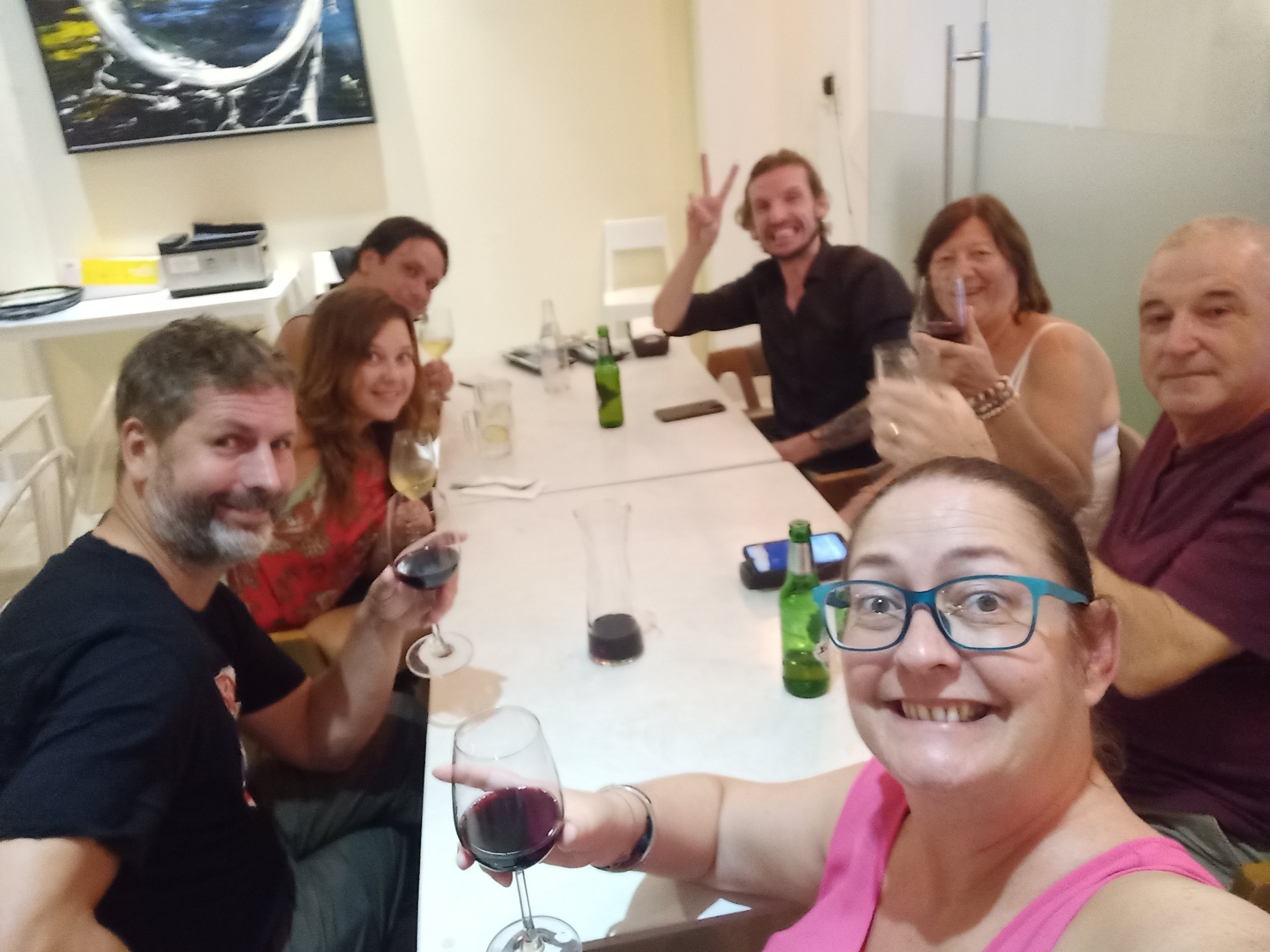 When we arrived Vee, the dog, was barking and had a new friend, Bindi. The new friend was blind and was just here until she could go to her new home. Caroline’s new apartment was lovely and, once we had been given the tour round and got acquainted with the dogs, wine was ordered. We chatted loads and we took the piss out of each other, especially when we learned that Caroline had been the subject of a funny rumour. People had said that when she worked in the Australian Navy she had been a pastry chef, hence her now running a bakery – she wasn’t! Caroline made popcorn, well she is a chef, and we got through 2 bottles of wine with ice and soda before ordering more from the shop. Captain Caveman had arranged to meet up with some friends later but I was concerned we were getting a bit too merry to do that.