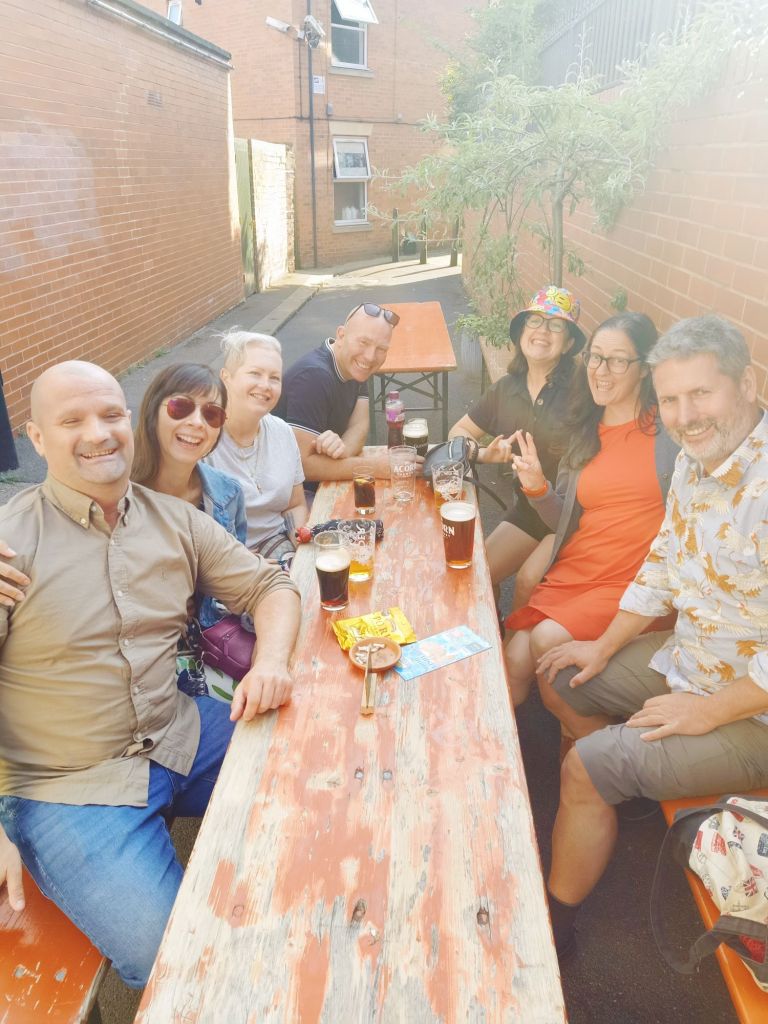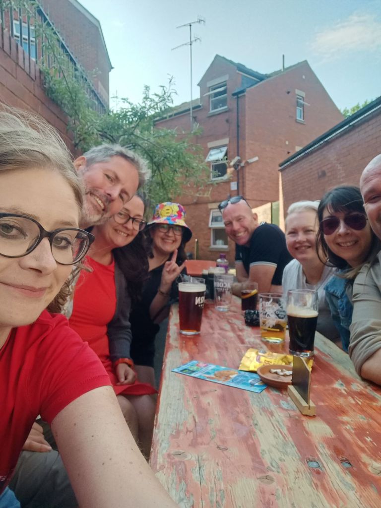 In the afternoon our friends, Amanda & Greg (aka The Aussies) had arrived from Australia for 6 weeks, and had invited us over to their villa. As soon as Captain Caveman was back and cleaned up, we walked over to see them and we were met with a surprise. They had brought us gifts and the most thoughtful one was a T-shirt for me which was my ‘You Can’t Shit Yourself on a Bicycle’ book cover with a QR code on the sleeve, to scan to my blog! I nearly cried with happiness at how good it was! And it fit perfectly – how fantastic. We had a drink to celebrate but then I had to leave Captain Caveman and The Aussies to it for a bit.
