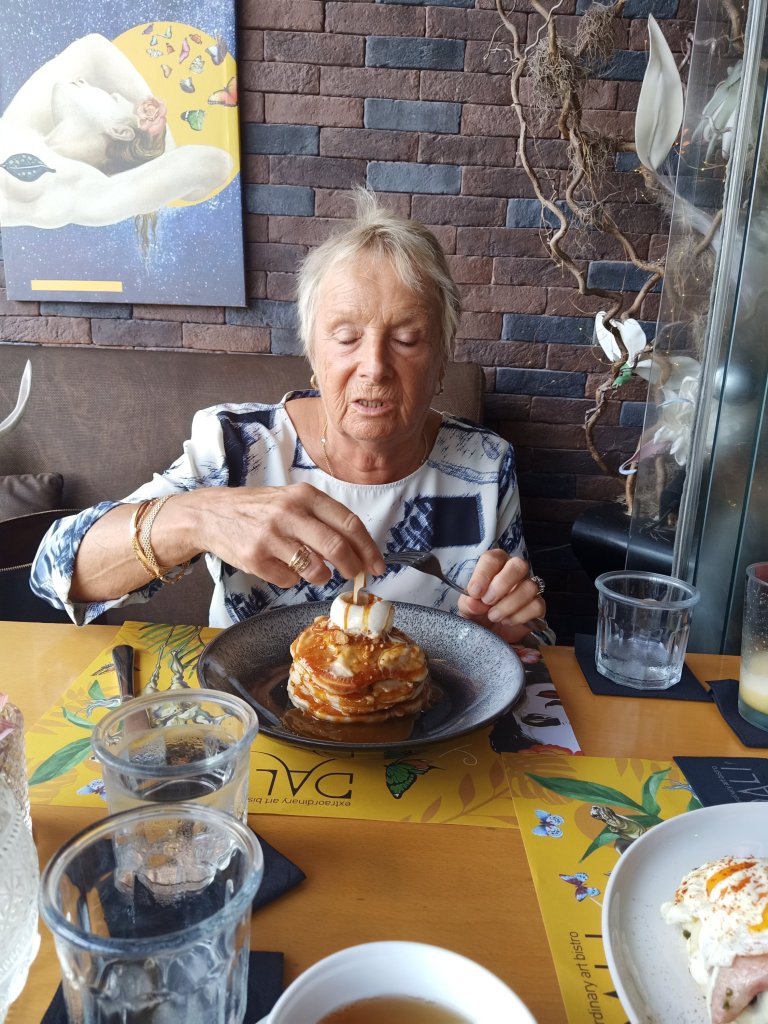 On Tuesday 5th September Captain Caveman was up and about at 7.30am packing his bag ready for the next part of our holiday. I really fancied more sleep but that wasn’t to be as bags were rustled and coat hangers rattled! This afternoon Jamie, Drew and Nanny Kay were getting the ferry back to Fethiye to return to Dalyan after their mini break. Captain Caveman and I were off for a spot of house and pet sitting in Lardos for Steve and Michelle’s dog and several cats. Nanny Kay, Captain Caveman and I started our day with another visit to Dali for a pancake breakfast. I decided to be more adventurous and have the cheese and spinach added to my bacon pancake while the other two had the same as yesterday. It was so good and we popped it on the list to visit again when my parents came.