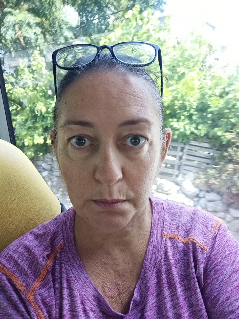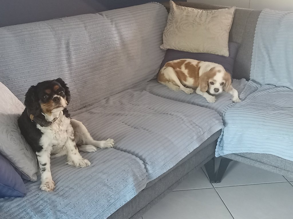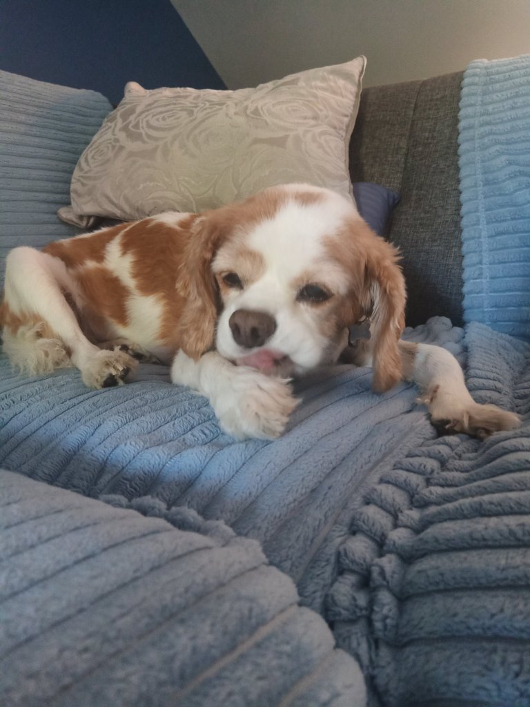I was looking forward to sleeping in on Saturday 16th September but at 4.15am Xena was sick again. Trixie knew Xena was out of sorts so we all got on the sofa in the living room for cuddles. It was just bile but I was worried and decided to just walk her a short way around the block at 7am. By 7.30am we were back and Xena was hiding behind a tree in the garden while I watered the plants. Before 10am I had a video call with Captain Caveman who was concerned if Xena was ok too and came on the phone to talk to her. Later, I decided to nip to the shops to stock up on things to take back to Turkey, as well as a few provisions to tide me over at Steve and Michelle’s for the next few days. I spent almost €18 (£16) on Teriyaki sauce, Sweet & Sour sauce, bacon lardons, cereal, pitta bread, crisps, plums and snackpots – using the rest of the cash Euros I had left. Aside from that quick shop, I stayed close to Xena and kept an eye on her. For dinner I ate the mushroom snackpot, some crisps, bran flakes and a couple of plums. I watched a bit of TV but had an early night.