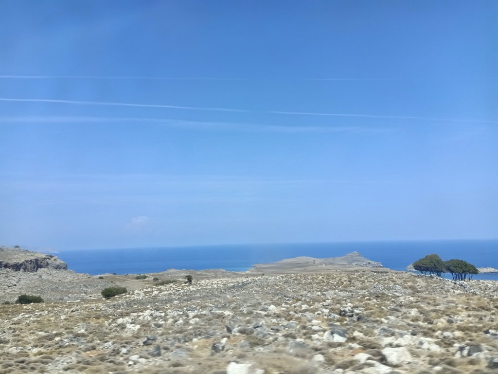 Captain Caveman had planned a bit of a treat after lunch and had decided we were going to walk a different route back, but one that would incorporate a trip to a wine store. Obviously, I was definitely up for a visit to the wine shop which sold wine by the glass too. As those of you are familiar with Captain Caveman’s walks will be, it was not straight forward. Within 20 minutes we were lost and he wouldn’t admit that the road on the map was not actually a road, it was barely a path and the amount of sleeping goats and their droppings were evidence enough to me that we were not on the right track. Our first argument in Lardos was quite a big one while I stood under an olive tree, trying to get some shade in the height of the afternoon sun. Captain Caveman walked around the perimeter of the fenced field we had found ourselves in and I applied sun cream to my face, neck, arms and legs which were already covered in dust from the ‘road’ we were walking on. He came back and explained that he was definitely still correct with his directions but as I was complaining so much we would try an alternative way – how considerate!
