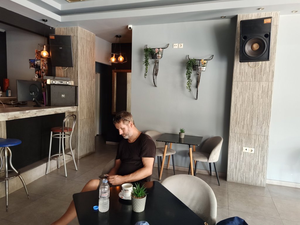 I had a bit of a sleep in on Saturday 7th October and did a bit of work in the afternoon from Steve and Michelle’s. They were working for some of the weekend too but had some people to see in Afandou. I got dropped off at a bar where I caught up on some blog editing while drinking peach iced tea and eating a bacon sandwich – I couldn’t remember when I last had one!