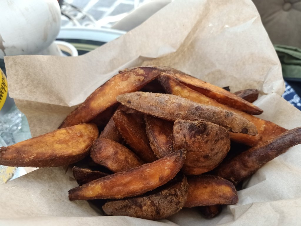 I took Xena for a walk, she was a bit sad and didn’t want to go far so we just did the short walking route which Steve had suggested. I had grapes, a peach and some yoghurt for breakfast and then worked from 11am to 4.15pm with breaks in between. This meant I had already worked a bit of my time from next week. When I went to take some washing in, I noticed that someone had put some discarded takeaway food on to the terrace for the cats to eat. It looked greasy and smelled disgusting so I removed it and threw it away. Apollo was not happy with that decision and had a face on with me. When I fed the cats the Friskies, they went mental for it, apparently it’s got something in it that makes it very moreish. For my dinner I made egg fried rice which I had with some left over pork, onion and potatoes – it was very nice. Xena had snuggles as she was missing Captain Caveman and we had a quiet Friday night in. She wasn’t sick again but I wanted to stay in with her, just in case.