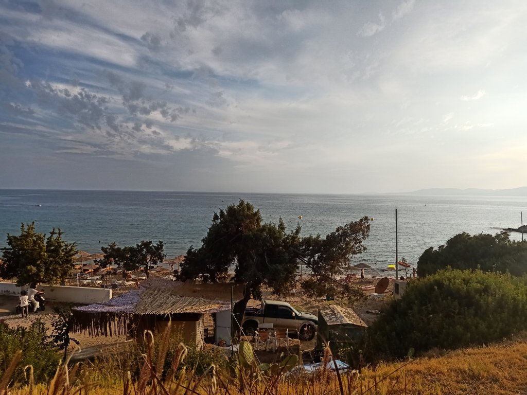 After shopping, we saw Mark and Maria, in Memories bar sat having a coffee so we went to join them. I ordered a juice but Captain Caveman ordered an Alpha beer! By 12.30pm we had been for a walk to find the house Captain Caveman had booked for us and my parents when they come to visit next month. It was very close to the village centre and looked like it would be a lovely Airbnb so I was pleased. Next, we went to Cuckoo’s Nest for coffee (I had water) with Louise and Mark. It was Steve’s birthday today so we took a photo to send to him. Captain Caveman had been trying to have pistachio ice-cream since being in Lardos but they never seemed to have any. Today they did, on his last day, so he had one and I had a lemon sorbet. Back home we had bread, hummus and Baba Ghanoush for lunch and we had plans to celebrate our last night together for a while, with a meal out. We didn’t have much money between us so we didn’t want to go mad. In Rhodes I can’t change lira and some places won’t accept my Turkish bank card.