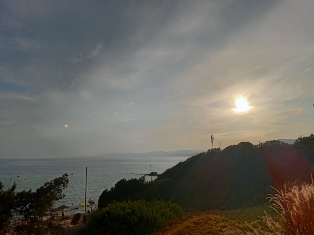 By 11am we had walked along a very shingly beach and had a paddle. I had sore feet so we decided to stop for a drink and a sit down at Kanaloa Beach Bar, Lothiarika, which looked a bit fancy. They had a sign saying you could use their comfy looking sun beds and order food and drink from the beach waiters for a service fee of €14 (£12.13) and I made a note that this might suit my parents when they visited next month. We ordered 2 mojitos which were very well made and refreshing at a cost of €16 (£13.86) for both.