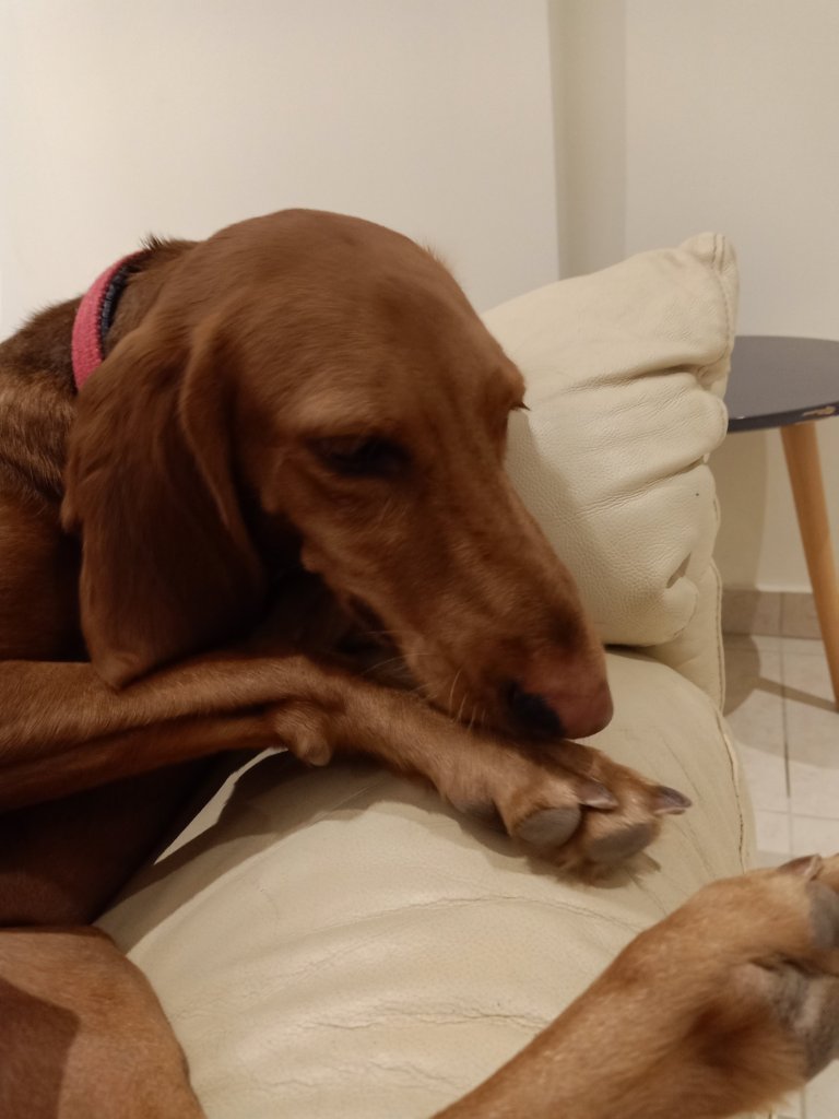 We both had a walk with Xena on Saturday 9th September, then had tortilla for breakfast, which Captain Caveman had made previously. We didn’t have any lunch and for dinner we decided to splash out €16 (£13.84) on a pizza from Roulas. The takeaway was really nice and we even had some left for tomorrow. I only took photos of the animals today for some reason.