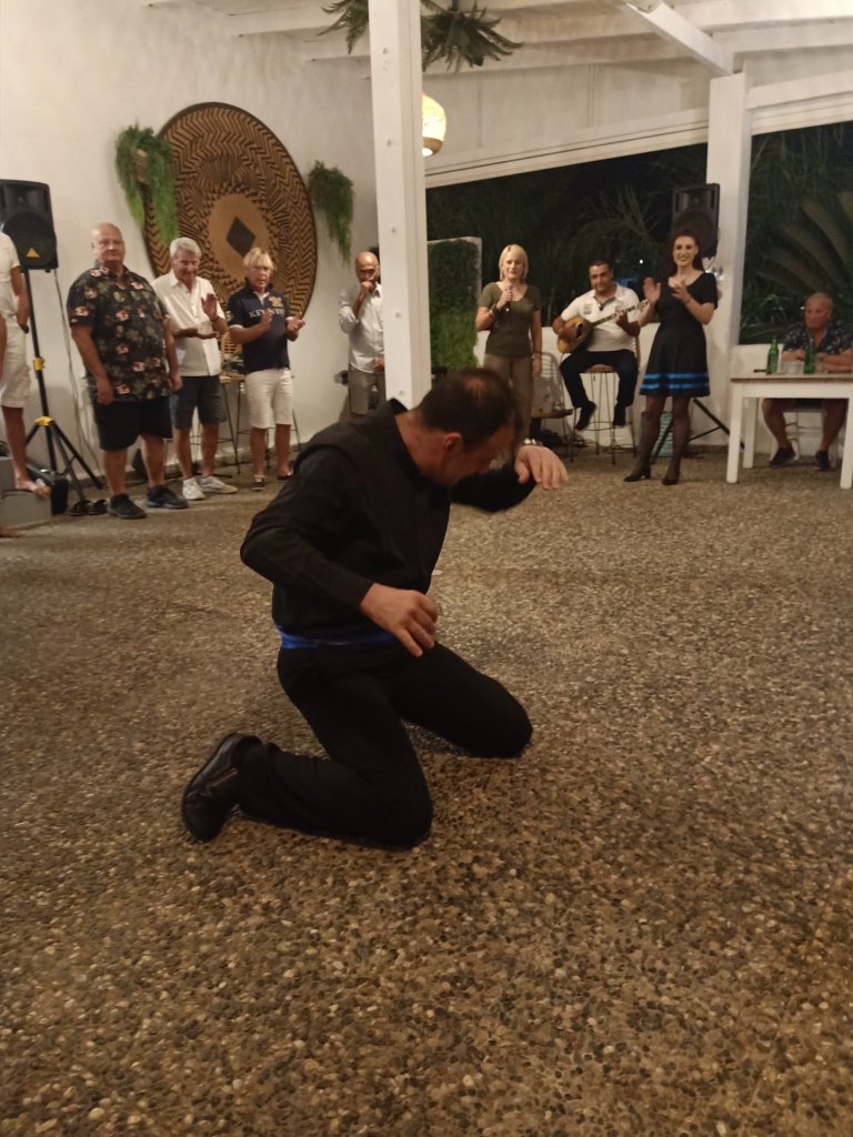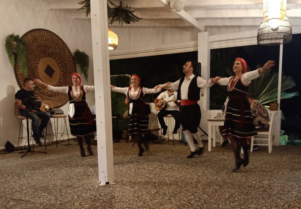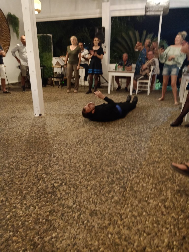Having been before with Captain Caveman, I was ready to do it all again and this time we were taking it steady as I was still flagging from last night’s shenanigans. I had Milokleftis cider and we tucked it to a delicious feast of pitta, tsatziki, feta salad, lamb, pork, chicken and french fries. There was live music, singing and the Rhodian ballet with dancing, which we were encouraged to join in on.