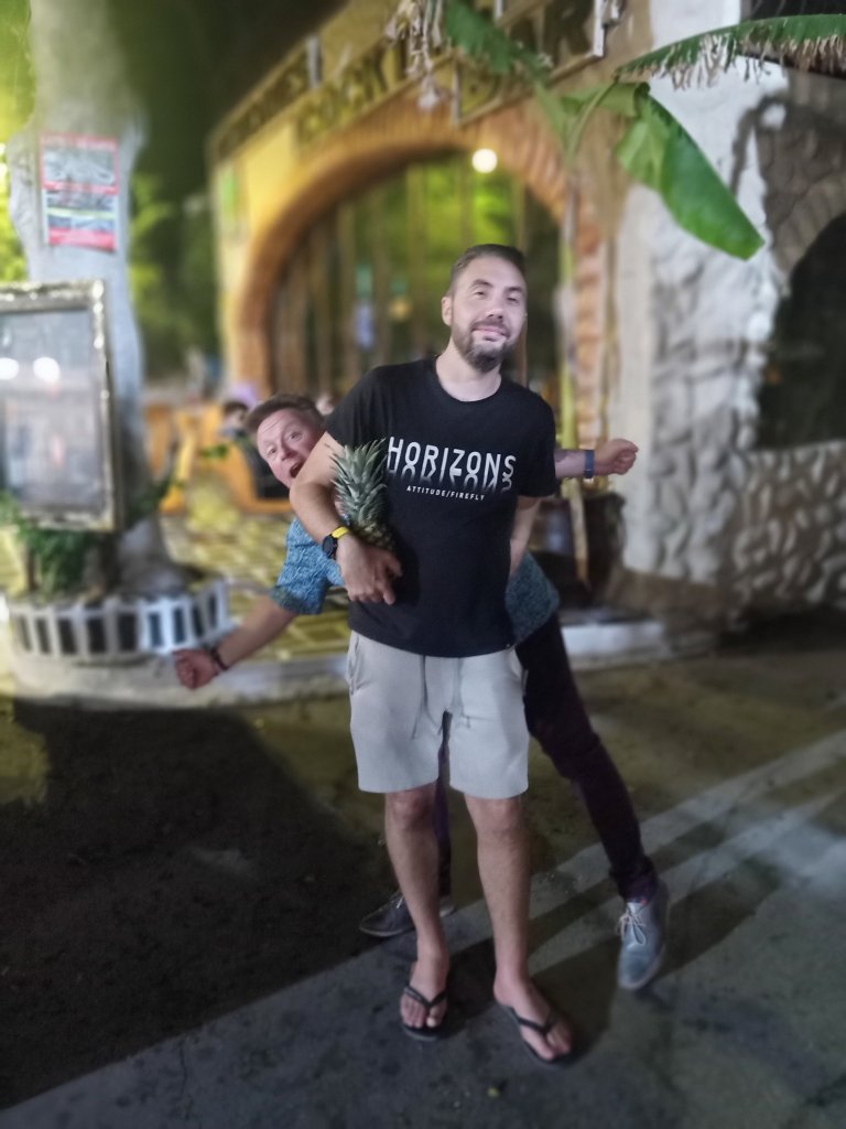 Back in Lardos, to say it got a bit messy was probably an understatement. We ended up meeting Mark, Maria, Lu, Az, Hannah and some other friends of their’s. We drank in the bars around Lardos square and Steve decided it would be a good idea to drink shots (it wasn’t). We spent a small fortune that night and it got a bit out of hand, Steve borrowed a pineapple off the bar and we didn’t get home until around 4.45am.