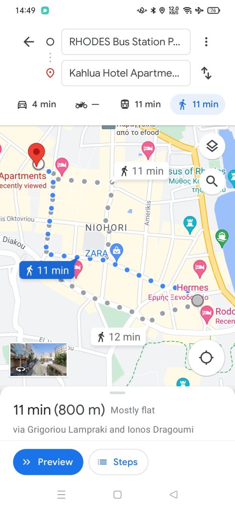 As you can probably imagine, Sunday 8th October was pretty uneventful for me! I spent most of the day feeling very ‘tired’ while Steve and Michelle went visiting friends and work contacts. I was happy for a day off and was looking forward to seeing Captain Caveman and my parents tomorrow night. Captain Caveman had booked us 2 rooms at Kahlua Apartments in Rhodes Town and he sent me screen shots so I could work out how to get there from the bus station. Michelle had offered to drive me, after work, but it seemed easier to get the bus as I’d done it before. I fed the animals while Steve and Michelle were out but had gone to bed before they returned home. Meanwhile, my parents were getting ready to fly from Manchester to Rhodes and Captain Caveman was enjoying his last night in Naples.