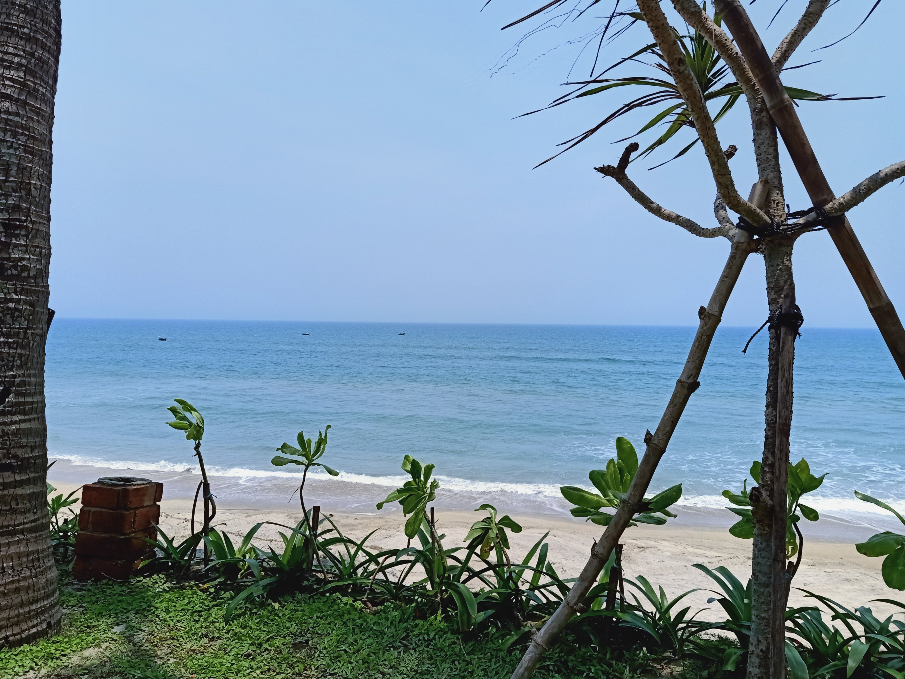 On Monday 25th July we were up early and ready for adventure! Instead, we were about to embark on a bit of a mental Monday! I’d arranged for us to meet Caroline (who used to live in Phong Nha) at 9 Grains Bakery & Cafe in Hoi An, at 9.30am. She is now one of the 2 owners of it and they do great croissants so we decided we would meet her there for a civilised catch up. With our croissants I had a lovely pot of earl grey tea and Captain Caveman had a couple of espressos made with the freshly delivered Faifo Roastery coffee. The cafe soon filled up with expat families and Vietnamese groups and the AC was nice and cool. By about 11am Caroline had suggested we go to the beach but she needed to change, so we would go to her place, just around the corner. As we left, she gave me a bar of handmade coconut soap, which they make and sell in the cafe. My eczema had been playing up on my neck again so this would be good to use. Captain Caveman walked it, while I had a lift on Caroline’s Royal Enfield Himalayan motorbike.