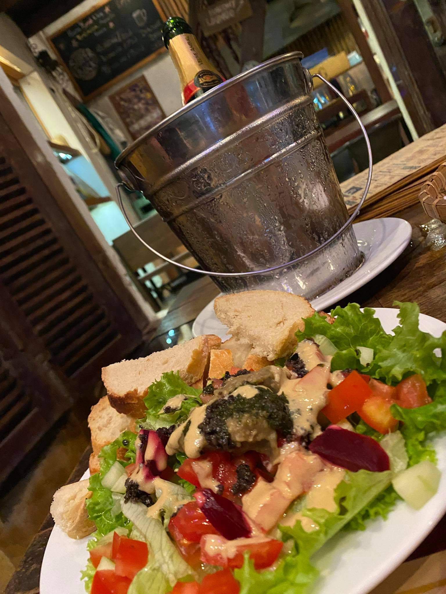 Not being one to miss a night out and, after a very short rest, antihistamines and Maalox, I was ready to go out out. Looking and feeling like I was pregnant, I went to meet Captain Caveman. He was already with our friends, Steve and June, at Market Bar and I managed to navigate a Grab taxi to find the bar. It was a lovely place with 2 for 1 on gins so I had two with cucumber and two with cocoa nibs (as you do). It was great to see our friends to catch up after 11 months of not seeing them. They took us to a lovely French restaurant, Le Petit Bistro, in Hoi An, which their friend owns and it was an absolute delight. June and I ordered the rum punch and we tried some nibbles courtesy of the chef. The staff were lovely and we all ordered main meals, I had wine, the men had beer and June was on the water. My beef stew was gorgeous and not particularly diet friendly. By 9.30pm it was home time, back to the Silkian Hotel for our last night. Tomorrow we had more exciting plans!