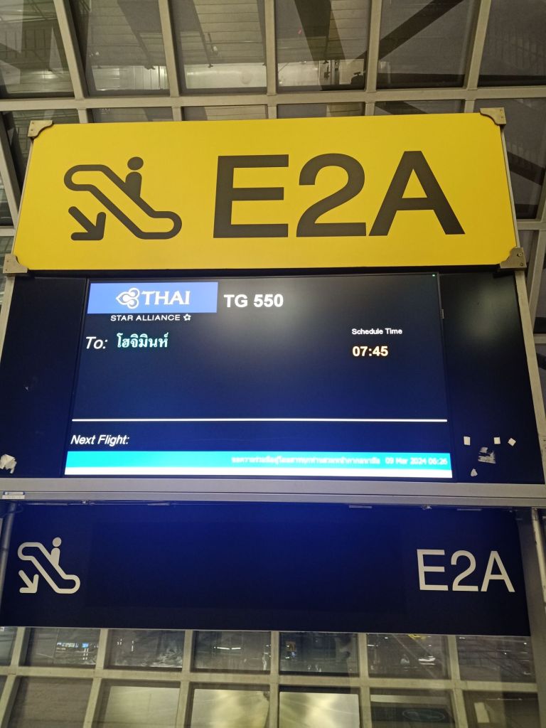 The weather conditions weren’t good on the morning of Friday 8th March and I was half expecting a flight delay. I made a cheese sandwich to have with the rest of my packing up and stored the rest of my belongings away. I bought 1 day of phone credit with data for 91 lira (£2.22) just in case I should need it while still in Turkey. The rain was tipping down and at 7.30am there was a little wobble of an earthquake. Jamie messaged to say he was on his way, 10 minutes early. The drive to the airport was swift and I hated saying goodbye to Jamie as I was going to miss him the most. My flight was first at 9.50am to Istanbul, Barney was slightly later to Sabiha Gökçen. I had booked the flight for just less than £30 which included 20kg hold luggage, 8kg hand luggage, a booked seat (12C), a sandwich, water and a hot drink. I said bye to Barney and went to the gate ready to board my flight which was on time. I had 5 hours in Istanbul as my flight landed at 11.20am but the next flight wasn’t until 4.30pm. I’d been tempted to book a lounge but I couldn’t justify paying for it when I couldn’t check in at Istanbul until 1.30pm which, by the time I got through security, would leave me with only 2 hours in the lounge. I found a nice spot to sit in the airport where I ate my pasties and some cake. A couple came and sat next to me and gave me a piece of baklava, which was kind. Captain Caveman had booked my one way ticket with Thai Airways from Istanbul to Saigon for £425, which included seat selection, meals with alcoholic drinks, a 10kg hand luggage and 23kg hold luggage (not that they checked and I was allowed to check-in 2 cases which totalled 24kg). My second flight of the day, Istanbul to Bangkok, took off on time and I was pleased to find myself with a row of 3 seats all to myself. By 5.45pm I had an inflight meal and some red wine, all of which was very nice. I watched some random film with Rebel Wilson in which was a bit rubbish and then watched old episodes of The Big Bang Theory. Thai Airways, for a budget flight, was pretty good so I was pleased Captain Caveman had booked me this one. I was due to land in Bangkok airport at 5.35am tomorrow, which would be 1.35am Turkish time.