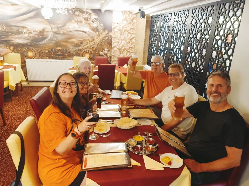 Captain Caveman had booked my train ticket from Otford on Friday 25th July at 10.59am which would go via London Blackfriars and St Pancras stations. I was due to arrive in to Sheffield at 2.42pm where Captain Caveman would already be working from a nearby cafe. Claire came with me to the train station and we said our farewells, hoping to see each other in Turkey in about 6 weeks’ time. I was still a bit teary at having to say goodbye, though, and always have such fun when I’m back with Claire. My train was full and the couple sat next to me were mildly irritating by taking up all the table room which could’ve gone on the rack above them. Then sloshing tea and cake about and finally moving seats when we got to Leicester. Captain Caveman met me in the Sheffield Tap and I used the facilities and logged in to finish some work emails before getting the bus. My parents had very kindly invited both Captain Caveman and I to stay with them for a few days and we were really looking forward to it. We got the 3.36pm Sheffield to Mosborough bus which cost £2.60 each for just one way – things had definitely gone up since my last visit! It was great to see my parents were doing well after both having some health issues; Dad was recovering well from a knee op and my Mom was doing well after eye surgery. It seemed only appropriate that we would celebrate with a quick trip to the pub. We were sipping pints int he The Alma by 4.30pm and, by 7pm, my sister and brother-in-law had joined us. We were going to have fish and chips at Tony’s but my sister is coeliac so it was a better option to go for an Indian. By 7.30pm we were all in The Vine Indian restaurant having a real feast with more drinks. We’d had a great afternoon and evening with the family, where a round of 4 drinks was less than £20 and starters, mains and drinks for 2 in the Indian came to £60. I even took half of my butter chicken and someone’s left over rice home for tomorrow. Back home we had more drinks and celebrated being back in Mosborough some more.