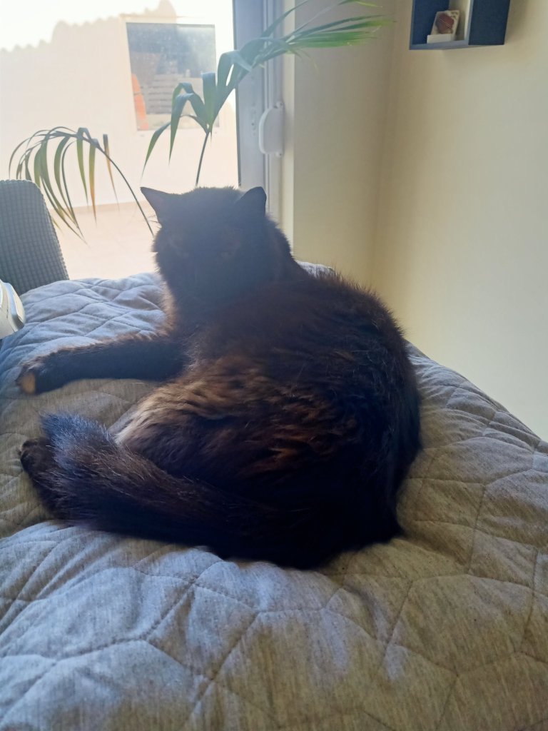 The first thing I noticed when I woke up at 6am on Friday 7th July, was that there was no internet. I didn’t particularly need it as I wasn’t scheduled to work today but it was unusual, given that Steve and Michelle work from home. On entering the living room area I saw the problem, there had been an incident involving cats, a basket from the shelf and the router getting knocked off. None of the cats were forthcoming but Trixie looked like she knew what happend and was keeping quiet. Lulu and Bella were particularly hungry today and were quite impatient for their biscuits this morning. Steve and Michelle messaged to say they were on their way so I stripped the bed and had a general tidy round. I was just getting the hoover out when they arrived back from a lovely jaunt over to Crete. Xena was beside herself with excitement that mom and dad were back, Trixie was also very happy but tried to play it cool by napping on Steve’s bag and pillow. I had a chocolatey croissant-like pastry for breakfast then it was all systems go.