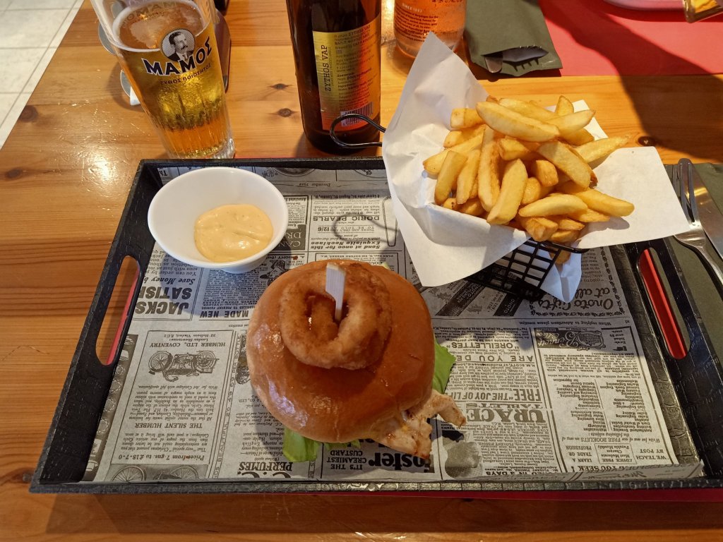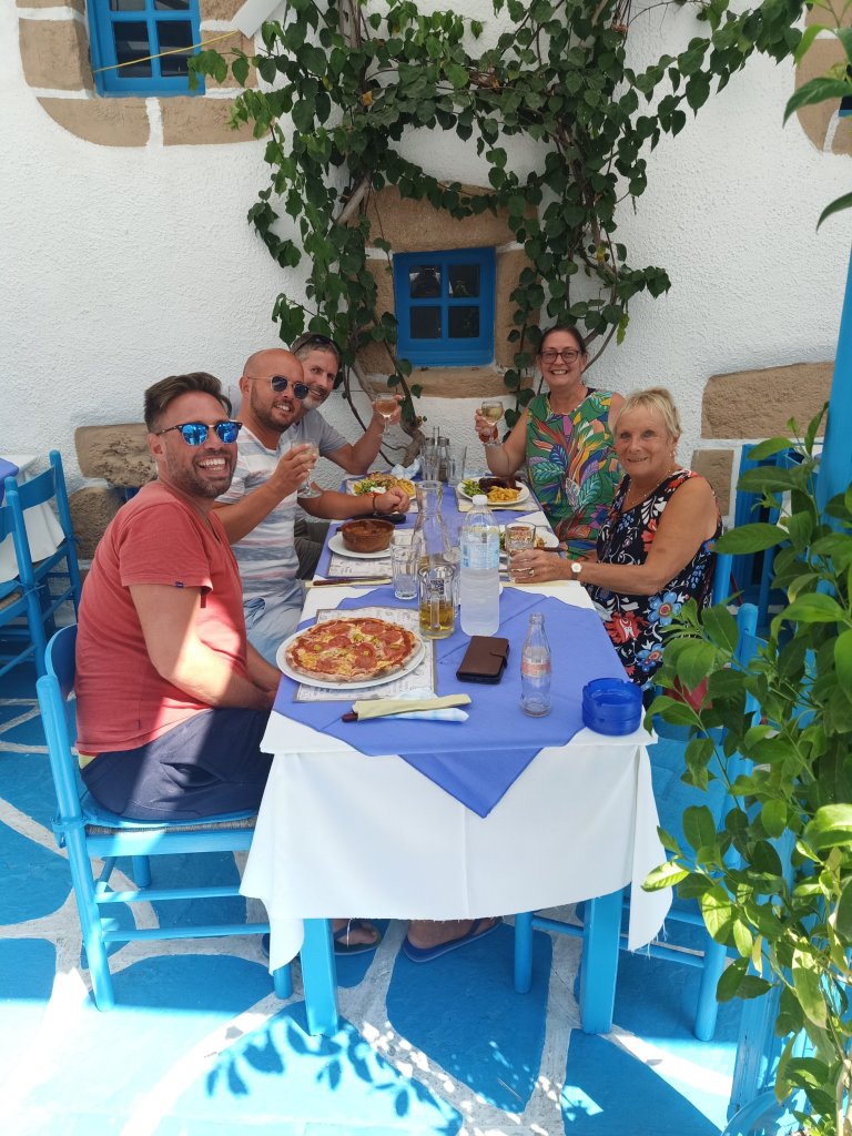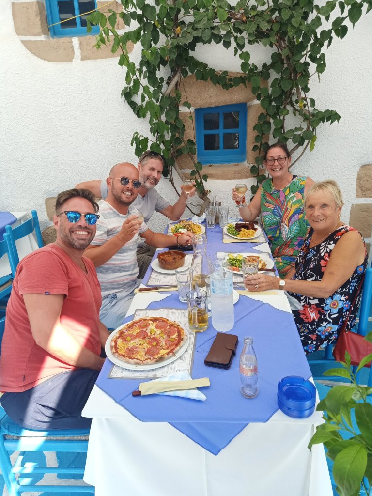 Life is always more lively with Steve and Michelle around so we went out for a lovely lunch at Alabama bar. Steve and Michelle took the healthy options and had wraps which looked great, I had a very good chicken burger with chips. We all had a cheeky beer and I gave people a headache by chatting on too much, not realising we were in a rush to get back. That night was the Greek night in Lardos and I was looking forward to my first one, having not drank much alcohol this week, I was about to make up for it!