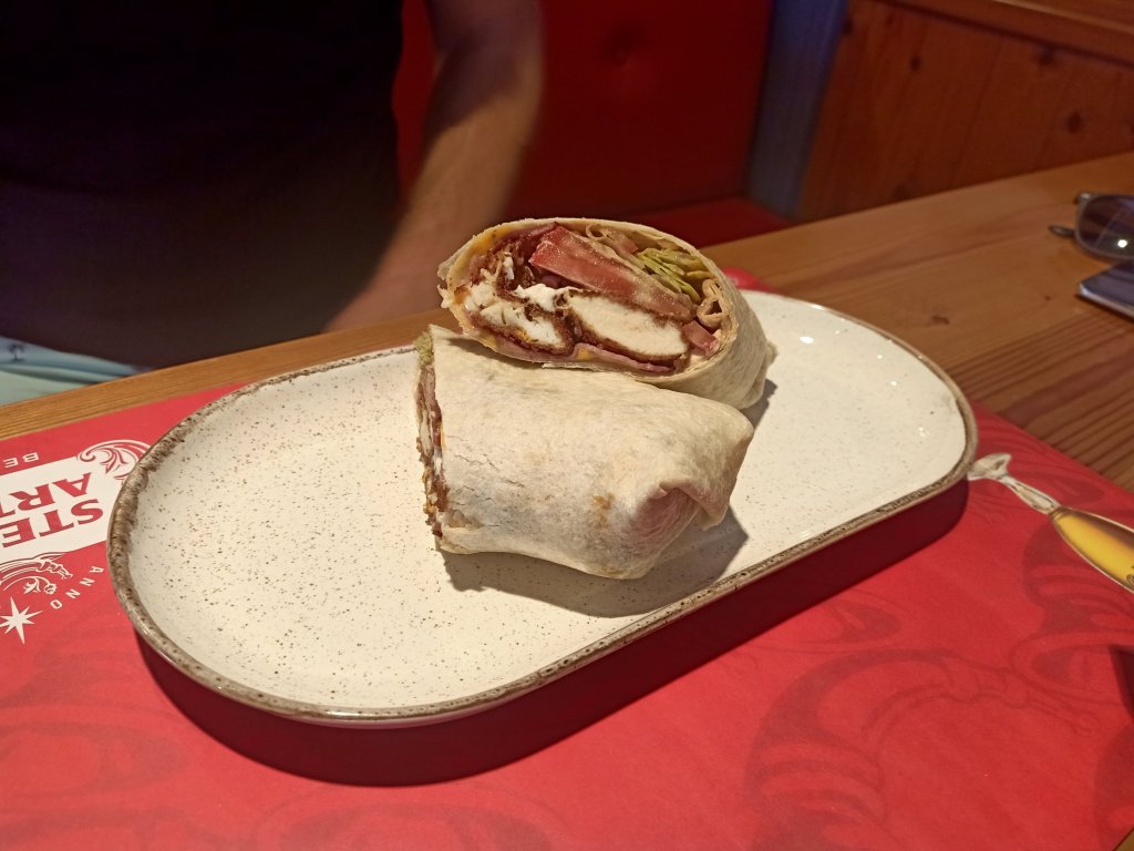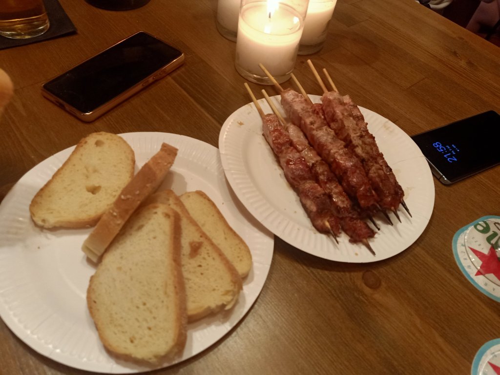 We went to Marks & Spencer’s and I was so disappointed to find they did not have a food section or sell booze. They had a few snacky things and some Percy Pig sweets but nothing that I wanted, even the clothes and underwear were not my style. I wanted to get a bottle of sherry for a friend as a thank you for all the bags of nice clothes she’d given me recently. All 5 of us had a wander round the shops and through the old town, stopping at a place called Streat for lunch, where Captain Caveman and I shared a pork gyros plate which was rather tasty. That night we had plans to celebrate Jamie’s birthday at a rather lovely restaurant Captain Caveman and I had been to before and we’d really enjoyed it.