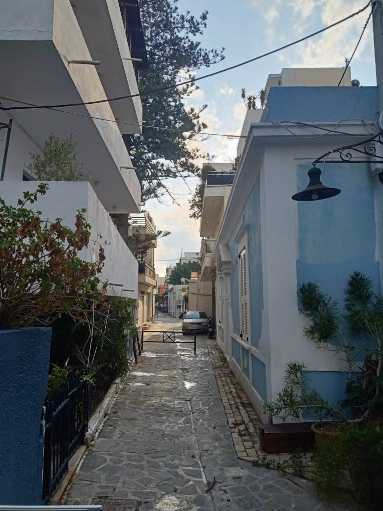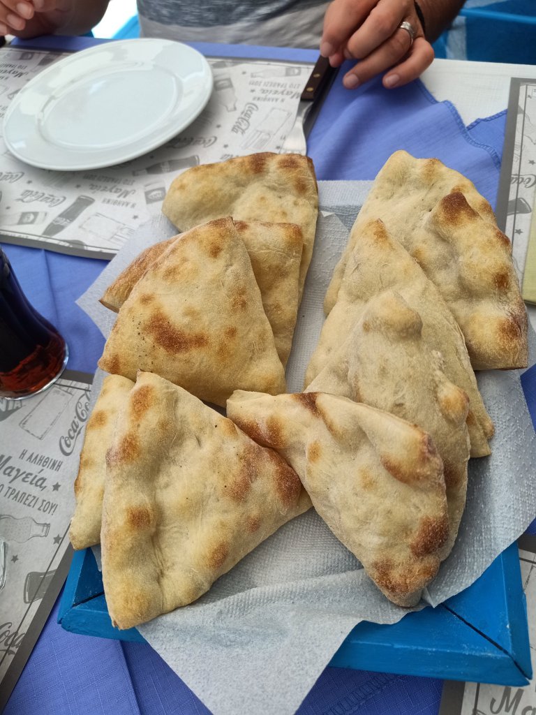 Although I didn’t start work as early as Steve and Michelle, I did decide to put a short shift in on the morning of Friday 12th May. I’d only been working about an hour when Michelle put her chef skills to use with a fantastic breakfast (the diet was going well)! Xena, the dog, was also a fan of sausage so she was glad when she got some leftovers. It was a sunny day and most of the cats had to seek shade, except for one who was having a sunbath. I was struggling to remember all their names but that one looked like Dave! We all got back to work after talk of what we might do tonight. Obviously the sensible approach was to have a quiet evening and an early night, as I needed to be at the airport at stupid o’clock tomorrow morning. In the afternoon we had a bit of a change of scenery with a couple of Milokleftis ciders at Yamas bar. A little kid went past and dropped his ice-cream so Steve very kindly bought him another one. We all had one too, from the bakery in Lardos square, where I had fruits of the forest flavour. I’m not usually an ice-cream fan but this place has lovely ice-cream. There are lots of flavours to choose from too and the people who work there are friendly. In the afternoon, while I packed for Vietnam, Steve and Michelle went back to work.