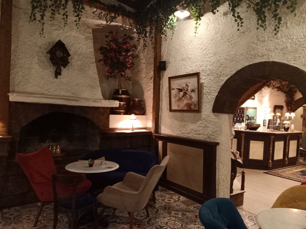At gone 2am on Monday 4th September I was up needing a wee and to put the AC on, it was over 30⁰C and rather sweaty in our room. I’d also got a message from my friend about dates for a holiday in Rhodes next year so I was mulling over how I was going to be able to plan ahead, knowing I still didn’t have my residency renewal appointment date for this year and wouldn’t know until Sonuç could confirm on the system. Now that I was out of the country I couldn’t access the system for an appointment so would have to wait until I got back to Turkey to find out more. For breakfast Captain Caveman had found us a nearby café called Dali Extraordinary Art Bistro, it had fancy tea and pancakes with some interesting combinations. Nanny Kay ordered pancakes with ice-cream, caramel and biscuits on, Captain Caveman had bacon, cheese, spinach and egg, smothered in a mayo sauce. I had plain pancakes with bacon on and they were very nice.
