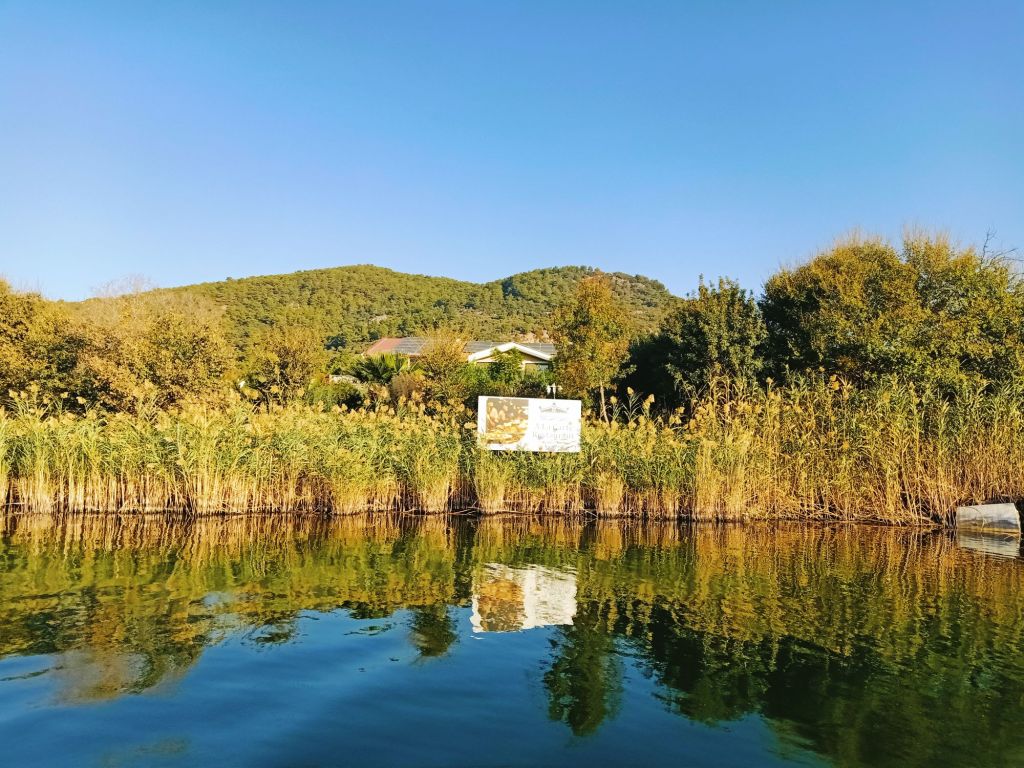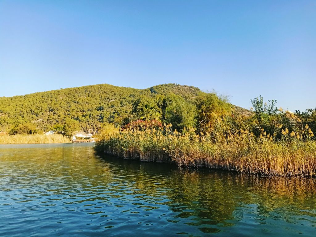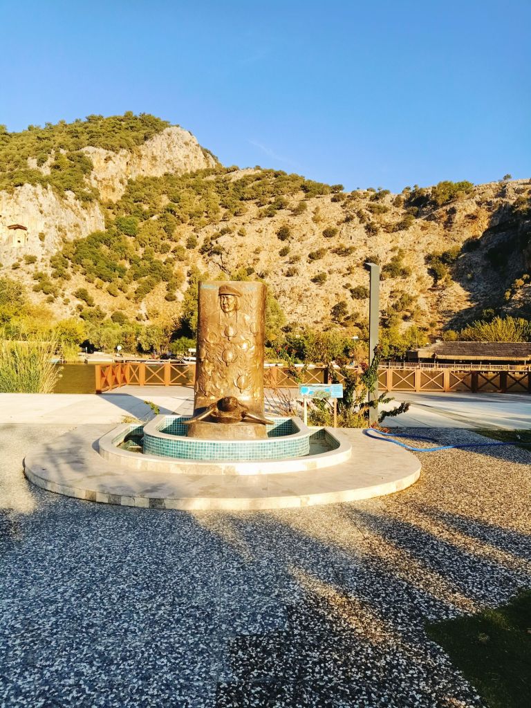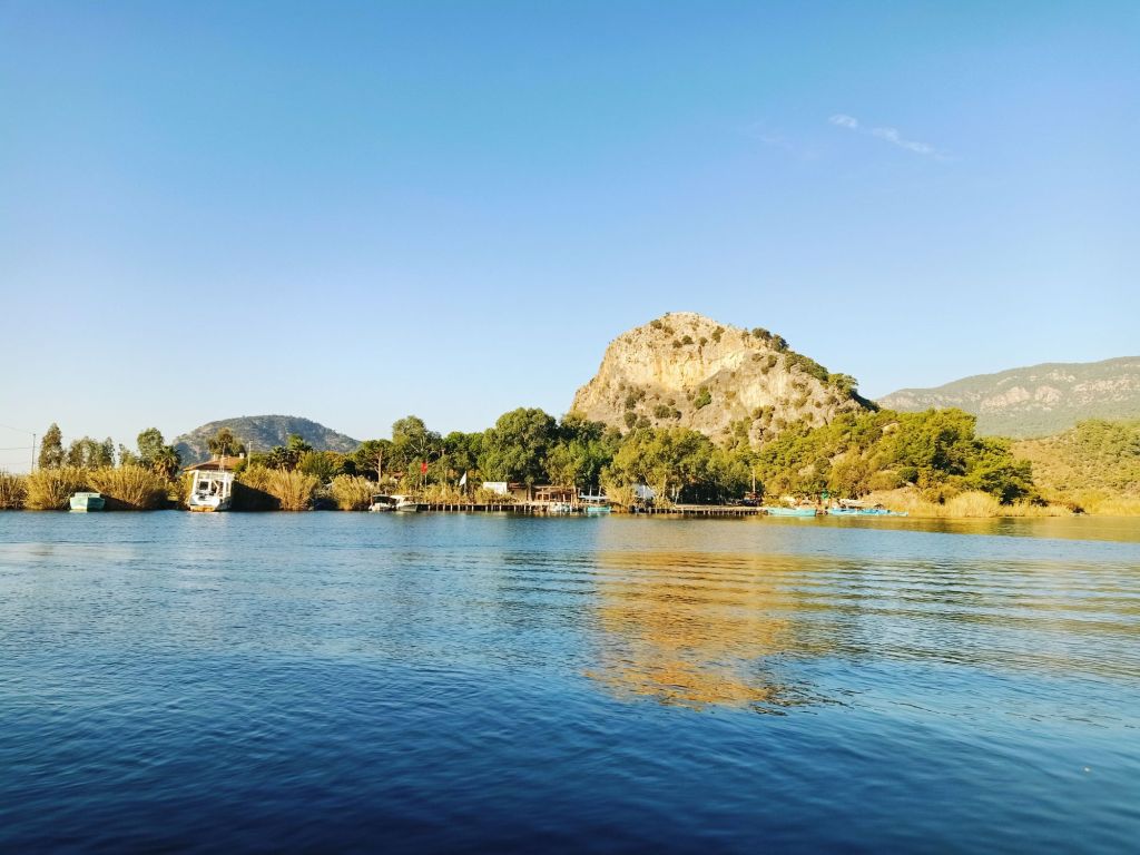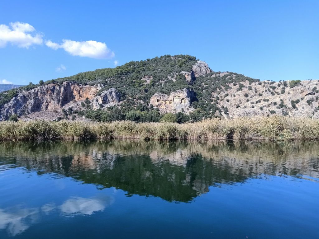My parents were early but I was ready for our evening meal out. Ma had booked us in to Yalıcapkını (Kingfisher) Restaurant and she had arranged for the boat to pick us up at 6.30pm. We were about 15 minutes early so when we got on the boat, we decided to all have a wine. It wasn’t great and Mom’s glass of white was off and had to be replaced. It also wasn’t cheap at 300 lira (£5.56) for a glass – and we decided we wouldn’t bother with one on the way back. The boat trip was just for the 3 of us and we sailed over to the Kaunos Tombs for sunset. It was really beautiful and it took us less than half an hour to arrive at the restaurant’s jetty. I struggled to get off but was helped and it was still light as we walked through the gardens. One of the big differences I noticed from being in Antalya was that I’d not had to worry for the last 5 days about uneven floor surfaces, unless I had ventured on to the beach. Here in Dalyan, it’s a struggle to find an even floor surface anywhere.